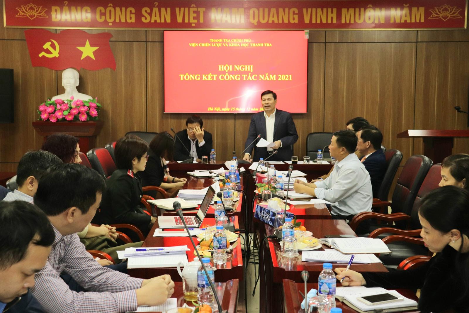 (Thanh tra) - Ngày 15/12, Viện Chiến lược và Khoa học thanh tra (CL&KHTT) tổ chức hội nghị tổng kết công tác năm 2021 và phương hướng, nhiệm vụ năm 2022. Phó Tổng Thanh tra Trần Văn Minh dự và phát biểu chỉ đạo hội nghị.