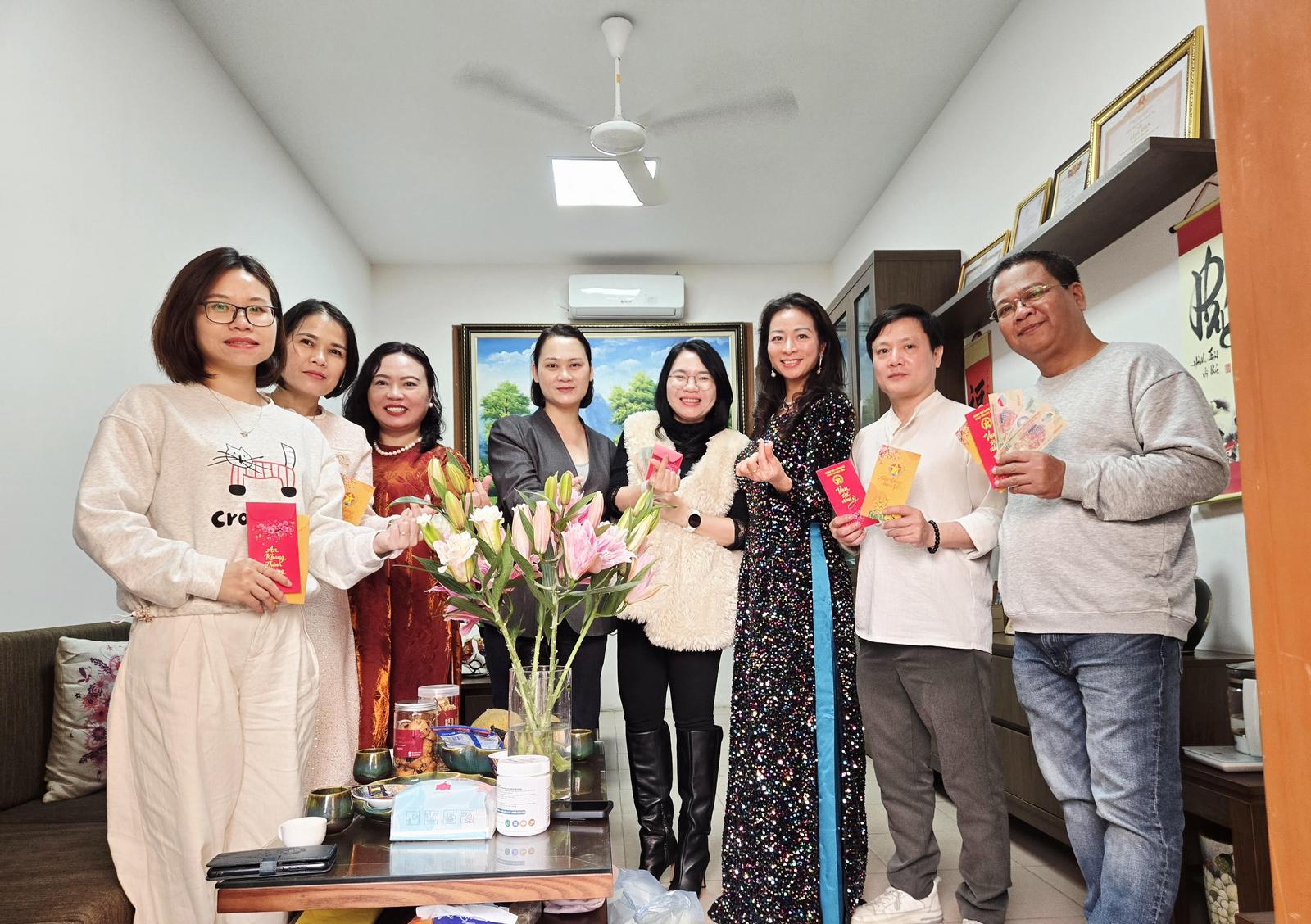 Tập thể lãnh đạo Ban Biên tập chúc mừng và lì xì đầu năm. Ảnh: TH