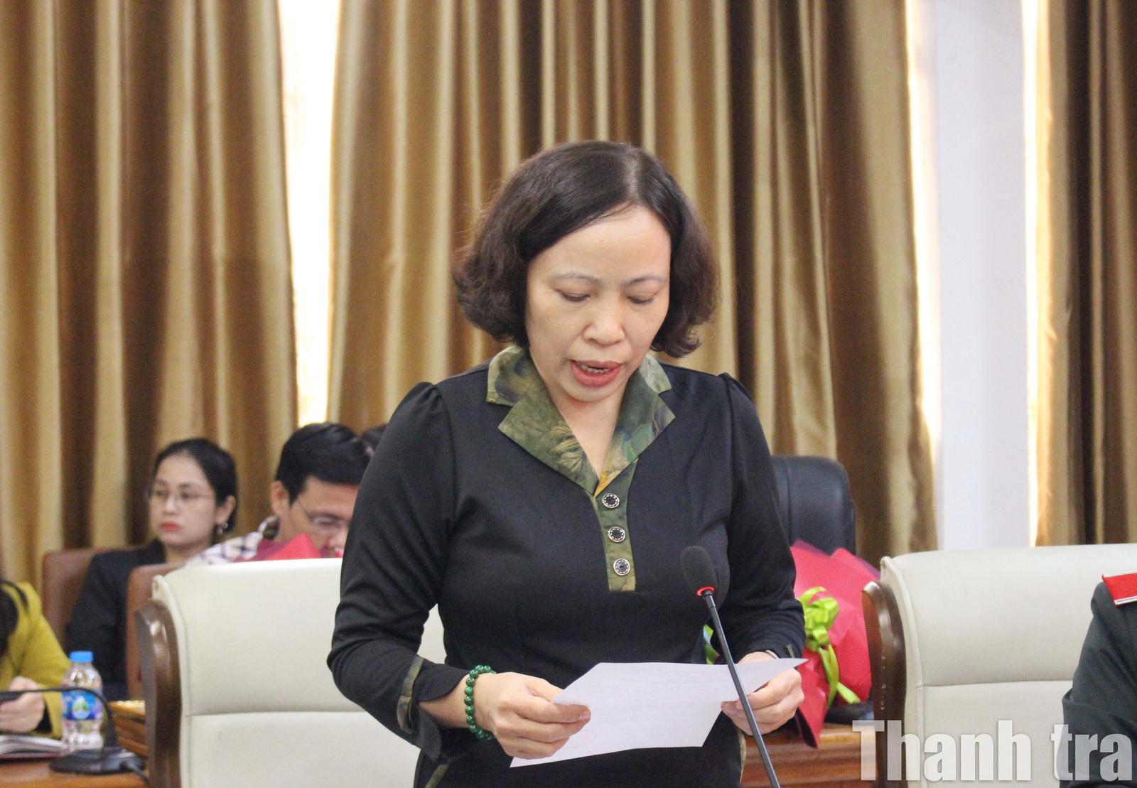 Trưởng Phòng Trị sự Báo Thanh tra Ngô Thị Tính công bố các quyết định về công tác cán bộ. Ảnh: LP