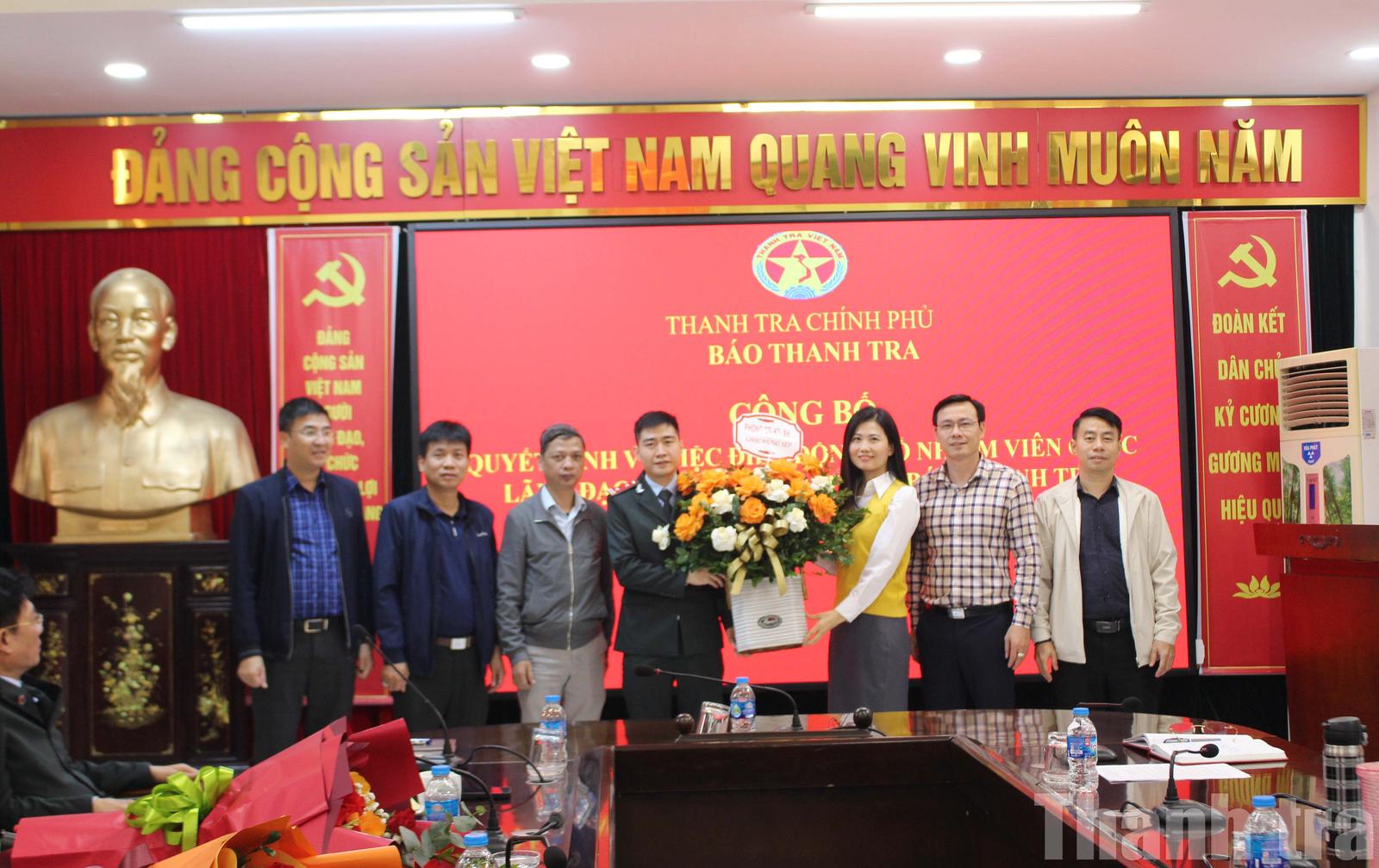 Phát biểu tại buổi công bố, Tổng Biên tập Báo Thanh tra Nguyễn Tuấn Anh chúc mừng các đồng chí được tín nhiệm bổ nhiệm, điều động giao trọng trách mới. Đồng thời, ghi nhận, cảm ơn những đóng góp của các đồng chí trong thời gian qua tại các vị trí công tác đã đảm nhiệm.