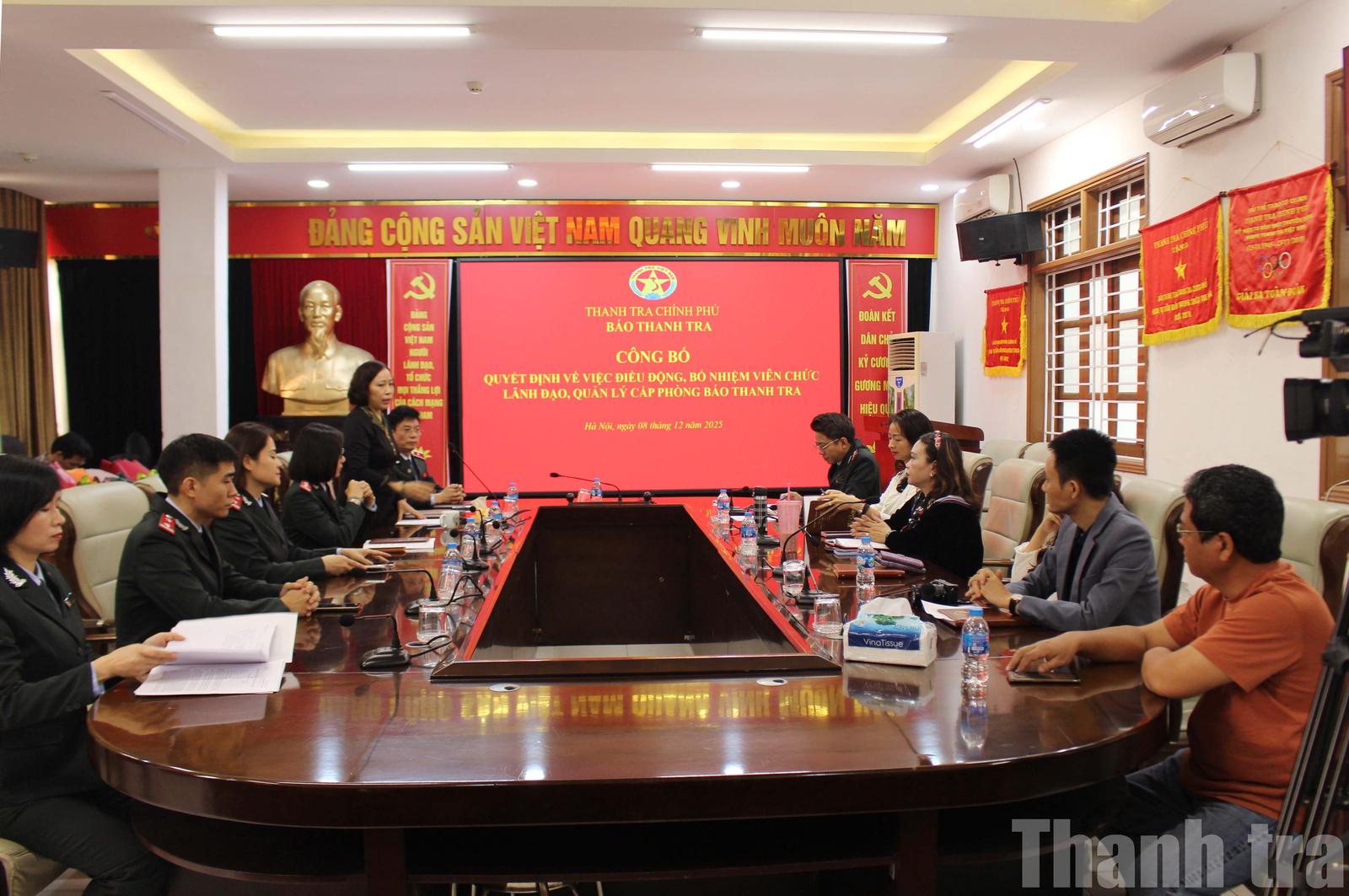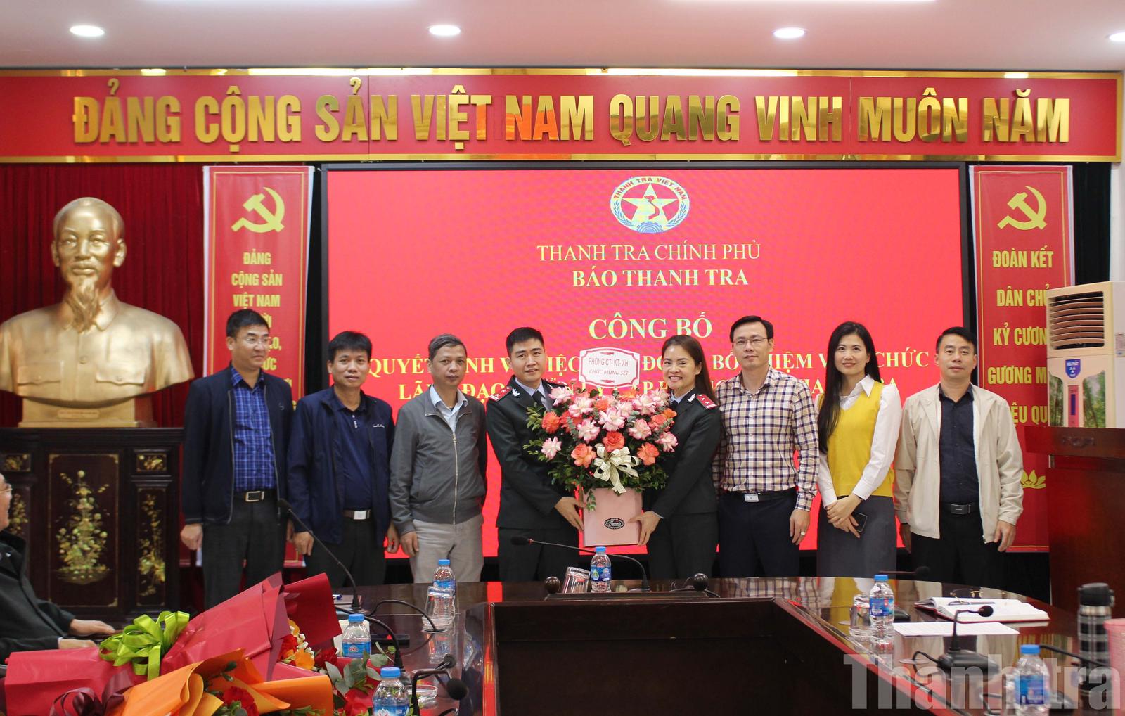 Tại buổi công bố và trao quyết định, bà Ngô Thị Tính, Trưởng phòng Trị sự đã công bố quyết định của Tổng Thanh tra Chính phủ và Tổng Biên tập Báo Thanh tra bổ nhiệm lãnh đạo cấp phòng gồm: