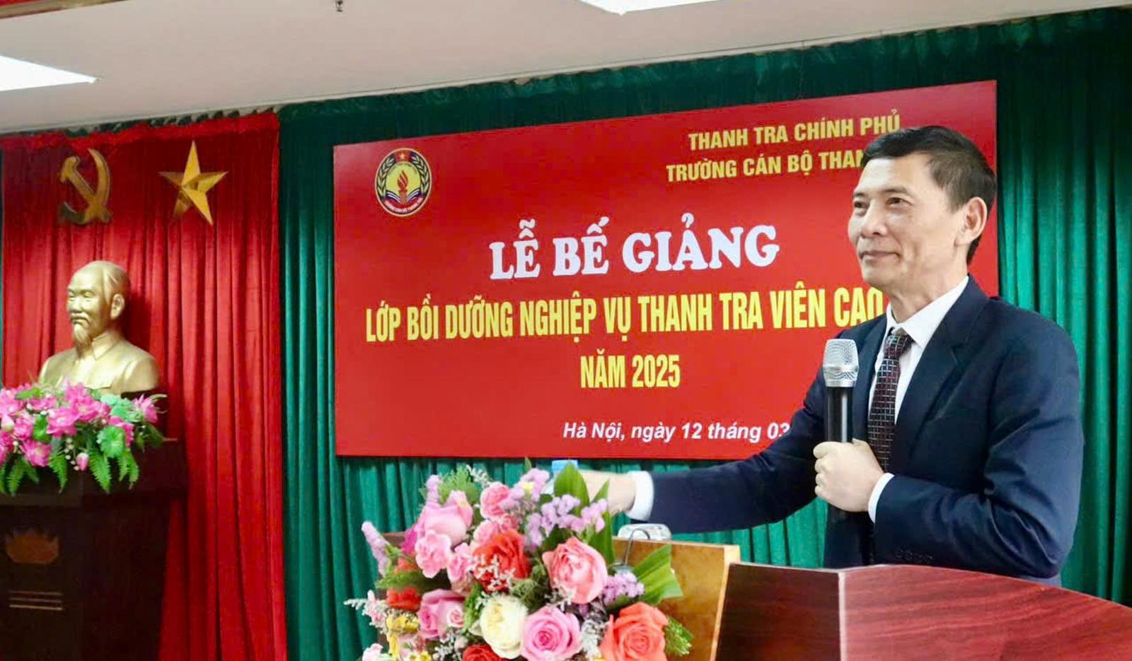 Phát biểu tại lễ bế giảng, ông Vũ Văn Chiến, Hiệu trưởng Trường Cán bộ Thanh tra chúc mừng các học viên hoàn thành khoá học. Đồng thời nhấn mạnh vai trò của khóa học trong việc bồi dưỡng, trang bị cho các học viên các phương tiện, kiến thức để trở thành người lãnh đạo, quản lý của ngành Thanh tra.