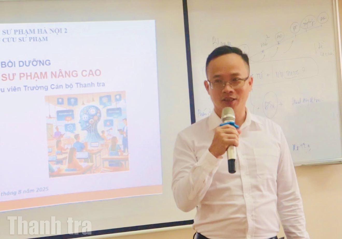 (Thanh tra) - Sau 3 ngày học tập, chiều ngày 21/8/2025, Trường Cán bộ Thanh tra tổ chức lễ bế giảng lớp “Bồi dưỡng, cập nhật kiến thức và kỹ năng nghiệp vụ sư phạm nâng cao” dành cho viên chức các phòng, khoa, trung tâm. Tham dự lễ bế giảng có ông Nguyễn Văn Lương, Hiệu trưởng Trường Cán bộ Thanh tra; lãnh đạo các đơn vị trực thuộc cùng toàn thể học viên của khóa học.