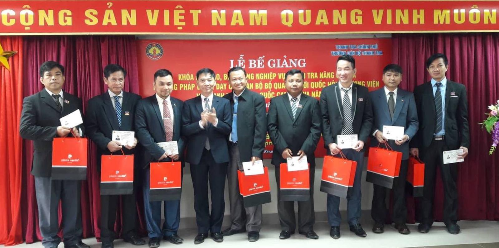 (Thanh tra) - Ngày 25/12, Trường Cán bộ Thanh tra tổ chức bế giảng Lớp Bồi dưỡng nghiệp vụ Thanh tra nâng cao cho 8 cán bộ Bộ Quan hệ với Quốc hội - Thượng viện và Thanh tra Vương quốc Campuchia năm 2017.