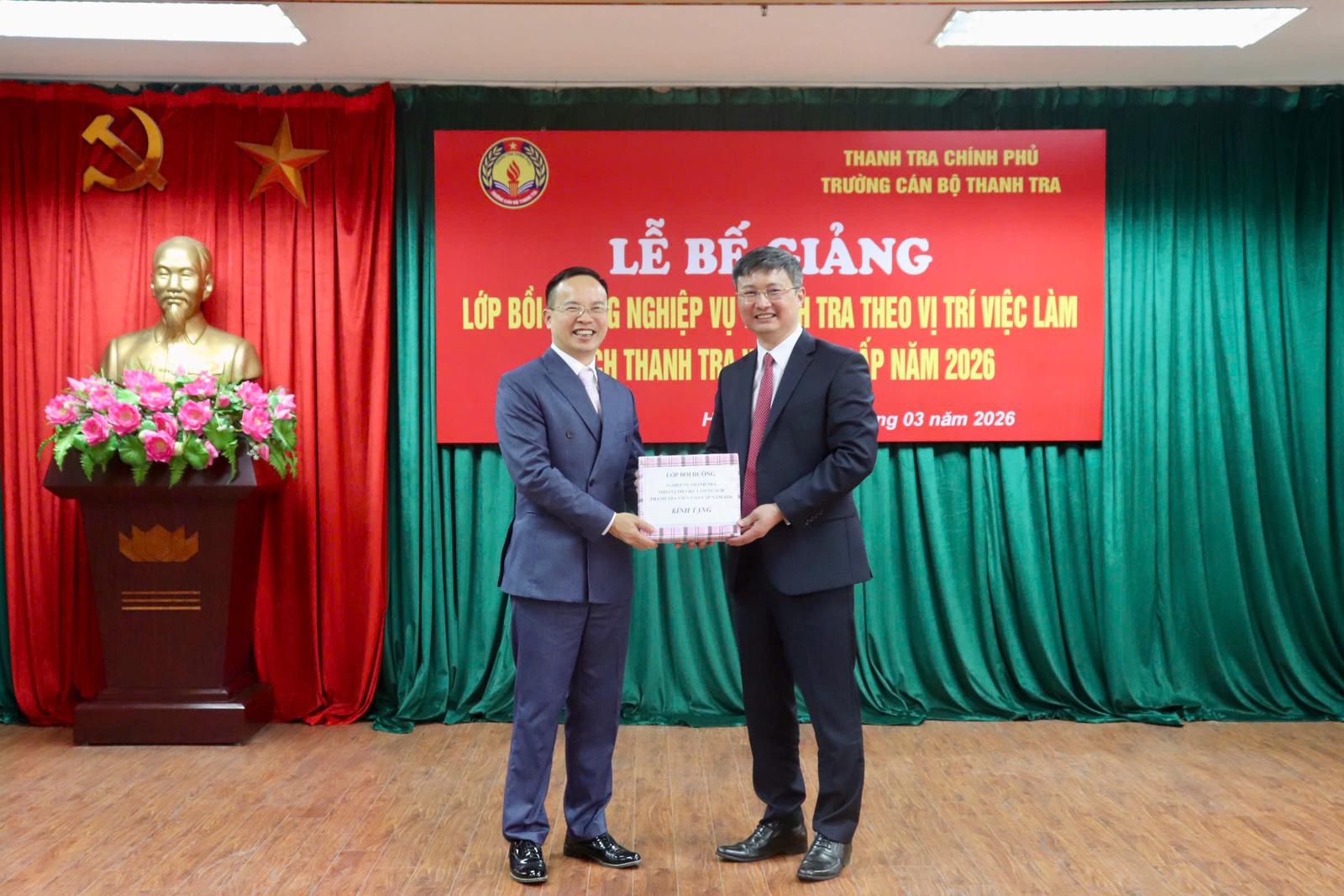 Thay mặt toàn thể học viên, ông Lê Văn Cường, Chánh Thanh tra tỉnh Ninh Bình, Lớp trưởng lớp bồi dưỡng nghiệp vụ thanh tra viên cao cấp năm 2026 bày tỏ sự trân trọng và cảm ơn đối với sự quan tâm, chỉ đạo của lãnh đạo Thanh tra Chính phủ và Ban Giám hiệu Trường Cán bộ Thanh tra.