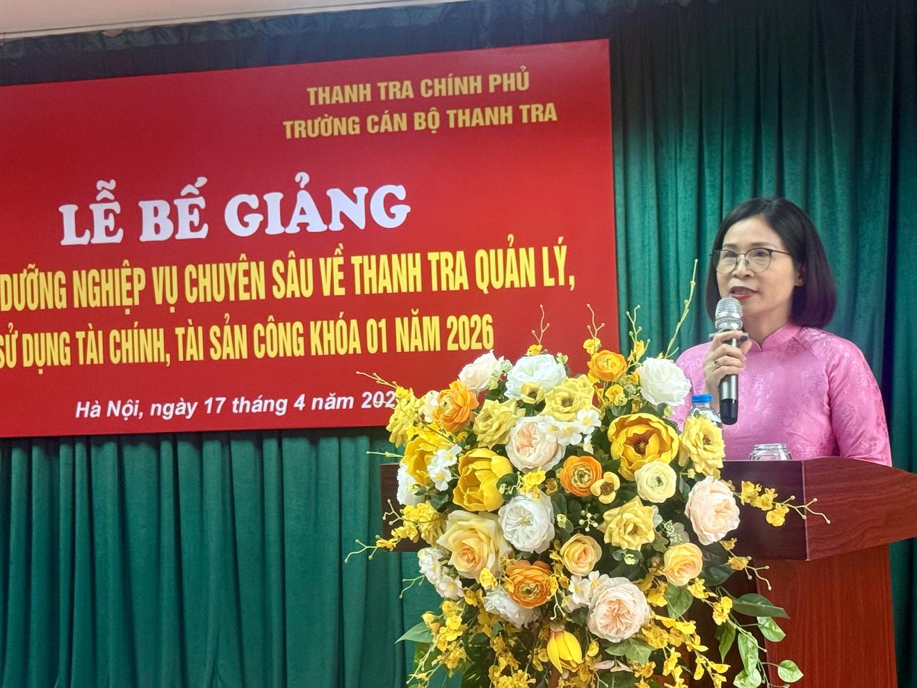 Phát biểu tại buổi lễ, ThS Phạm Thị Thu Hiền, Phó Hiệu trưởng Trường Cán bộ Thanh tra ghi nhận và đánh giá cao tinh thần học tập trách nhiệm, nghiêm túc của các học viên trong suốt quá trình tham gia khóa học.