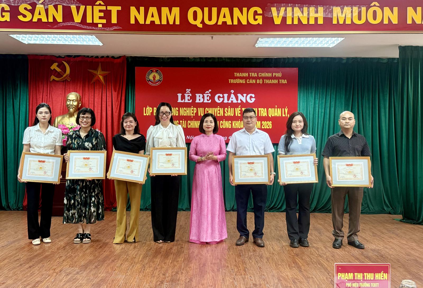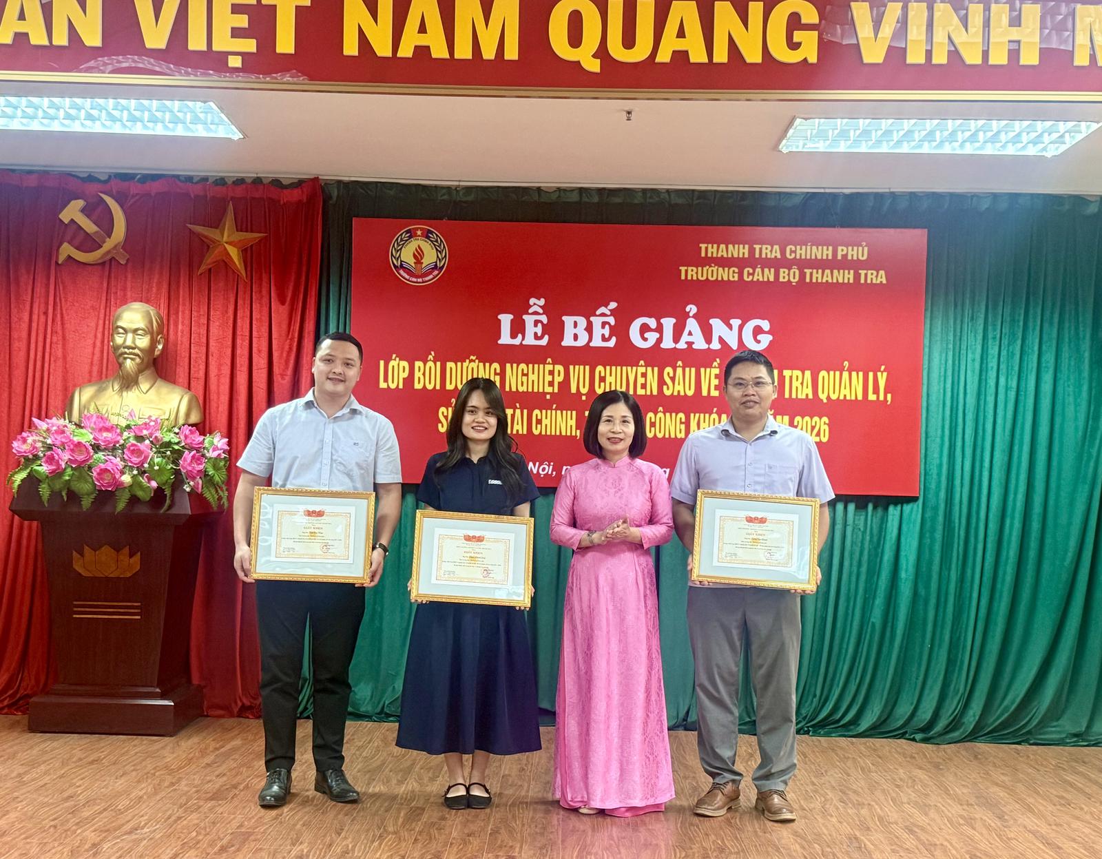 (Thanh tra) - Chiều ngày 17/4, tại Trường Cán bộ Thanh tra, Lễ bế giảng lớp bồi dưỡng nghiệp vụ chuyên sâu về thanh tra quản lý, sử dụng tài chính, tài sản công khóa K01/2026 đã được tổ chức trang trọng, khép lại chương trình học tập nghiêm túc, hiệu quả của gần 200 học viên là cán bộ, công chức đến từ Thanh tra Chính phủ.
