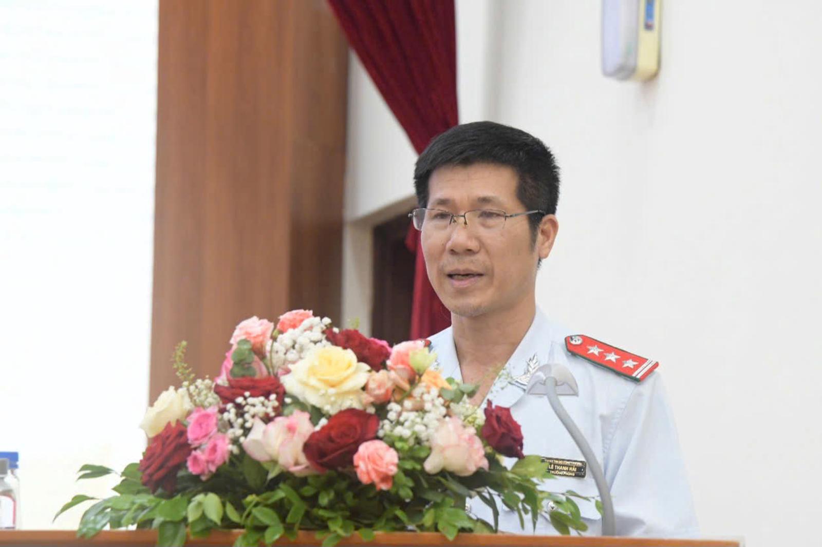 Ông Lê Thanh Hải, Bí thư Chi bộ Phòng 1, Cục IX phát biểu tại đại hội. Ảnh: Huy Trần