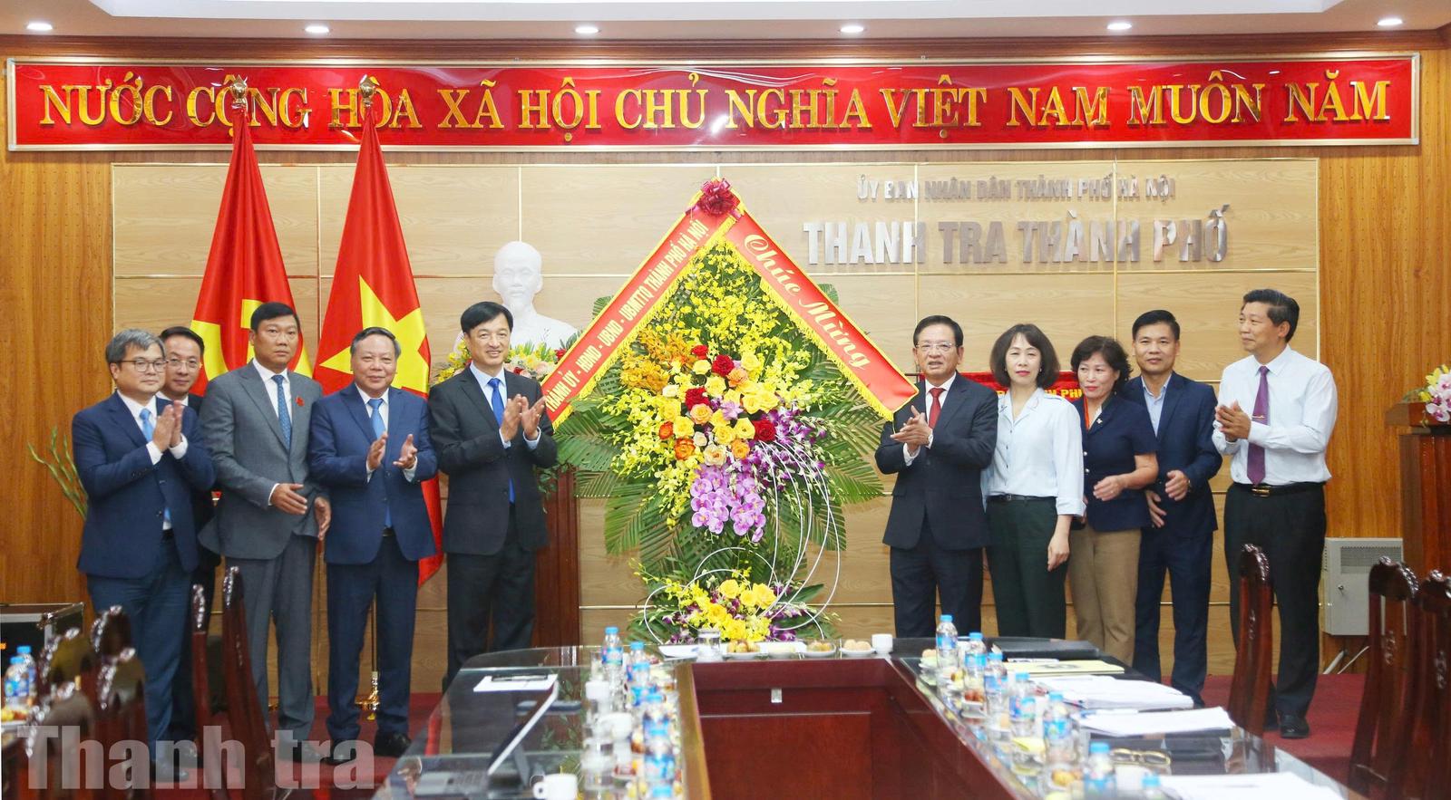 Tham gia đoàn công tác chúc mừng Thanh tra Thành phố còn có: Phó Bí thư Thường trực Thành ủy Hà Nội Nguyễn Văn Phong; Chủ nhiệm Ủy ban Kiểm tra Thành ủy Đỗ Anh Tuấn; Trưởng ban Nội chính Thành ủy Trần Đình Cảnh; Phó Chủ tịch UBND Thành phố Trương Việt Dũng.