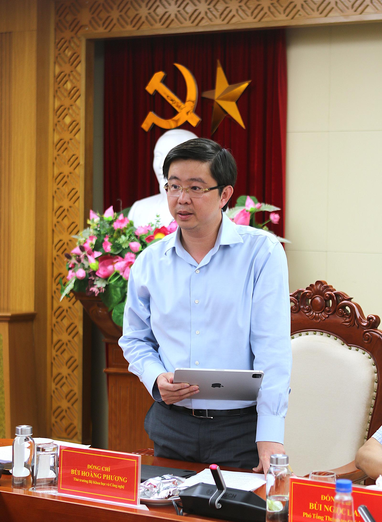 Ông Bùi Hoàng Phương, Thứ trưởng Bộ Khoa học Công nghệ phát biểu tại buổi làm việc. Ảnh: Hoàng Nam.