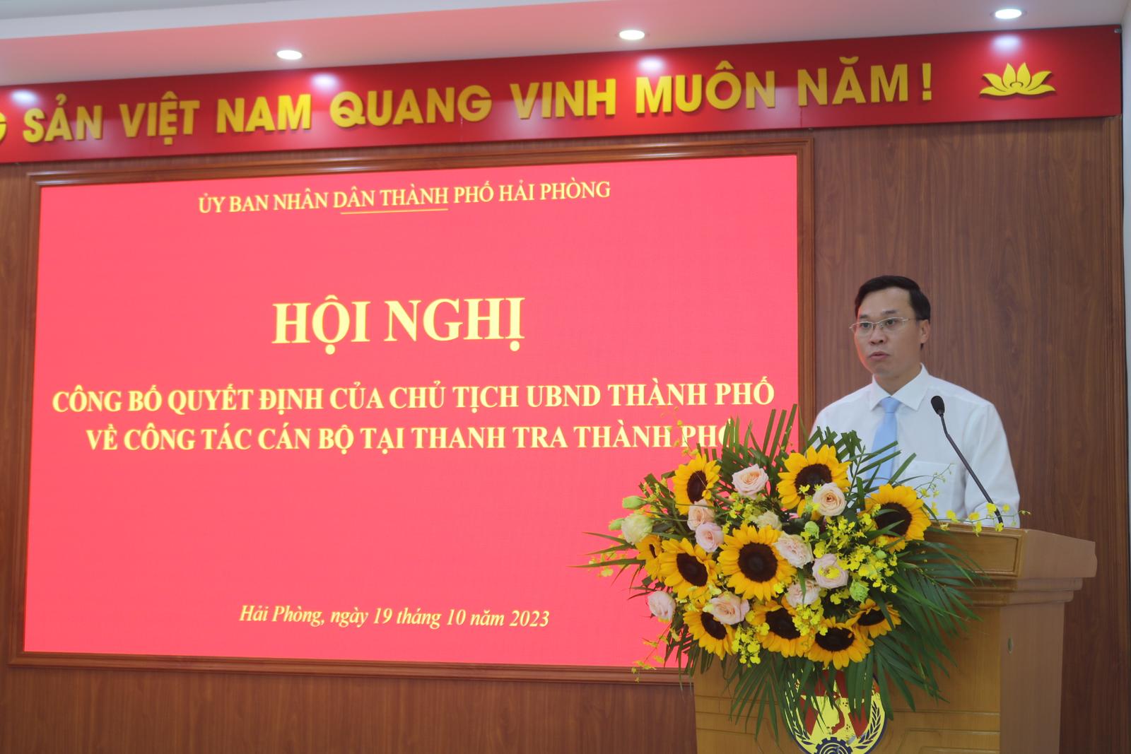 (Thanh tra) - Chiều 19/10, UBND thành phố công bố quyết định của Chủ tịch UBND thành phố về công tác cán bộ tại Thanh tra thành phố.