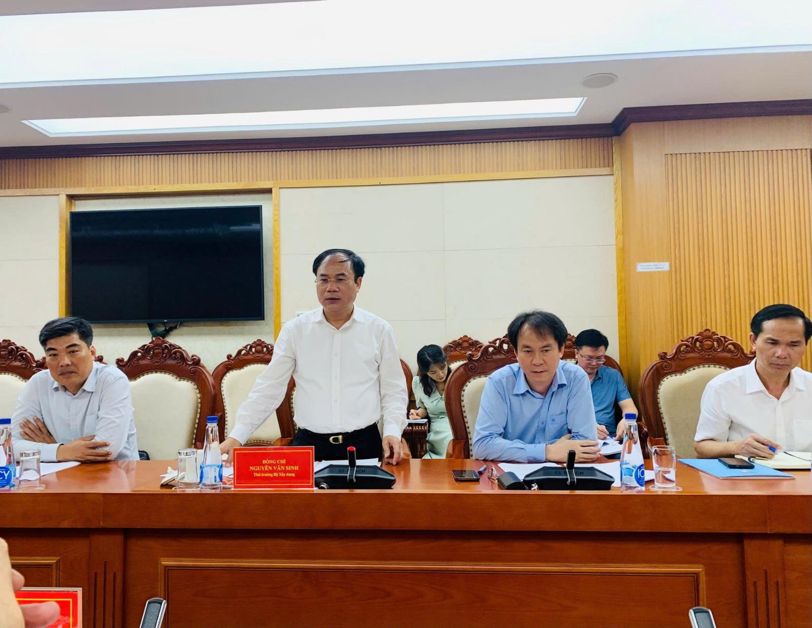 Thứ trưởng Bộ Xây dựng Nguyễn Văn Sinh phát biểu tại buổi làm việc. Ảnh: TQ