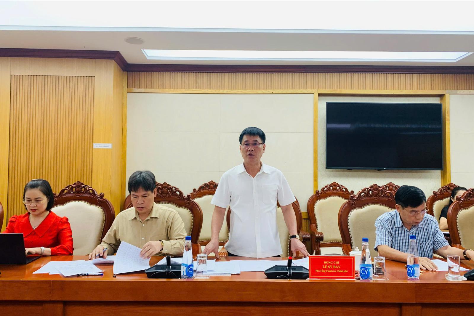Phó Tổng Thanh tra Chính phủ Lê Sỹ Bảy phát biểu tại buổi làm việc. Ảnh: TQ