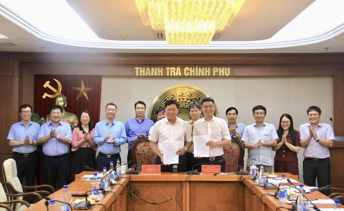 Phó Tổng Thanh tra Chính phủ Nguyễn Văn Cường, Thứ trưởng Bộ Y tế Đỗ Xuân Tuyên ký biên bản bàn giao Thanh tra Bộ Y tế về Thanh tra Chính phủ. Ảnh: PV