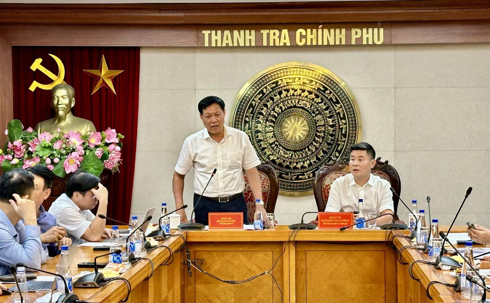 Phó Tổng Thanh tra Nguyễn Văn Cường phát biểu tại buổi làm việc. Ảnh: PV