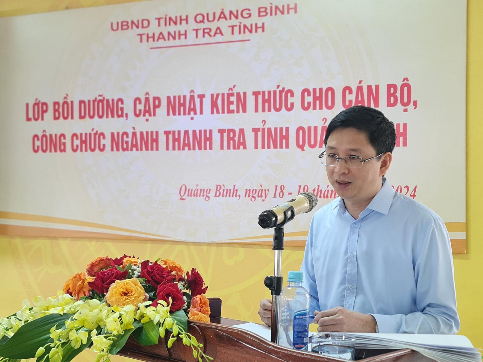 Phát biểu khai mạc lớp bồi dưỡng, ông Hà Vĩnh Trung, Phó Chánh Thanh tra tỉnh Quảng Bình cho biết: Thời gian qua, ngành Thanh tra tỉnh đã có nhiều nỗ lực, cố gắng, nhờ đó công tác thanh tra đạt được một số kết quả tốt. Kế hoạch thanh tra năm 2024 của toàn ngành được xây dựng kỹ lưỡng theo quy định của Luật Thanh tra năm 2022 và các văn bản chỉ đạo, hướng dẫn của Thanh tra Chính phủ. Tuy nhiên, quá trình triển khai thực hiện theo luật mới tại địa phương có nhiều đơn vị còn gặp khó khăn, vướng mắc.