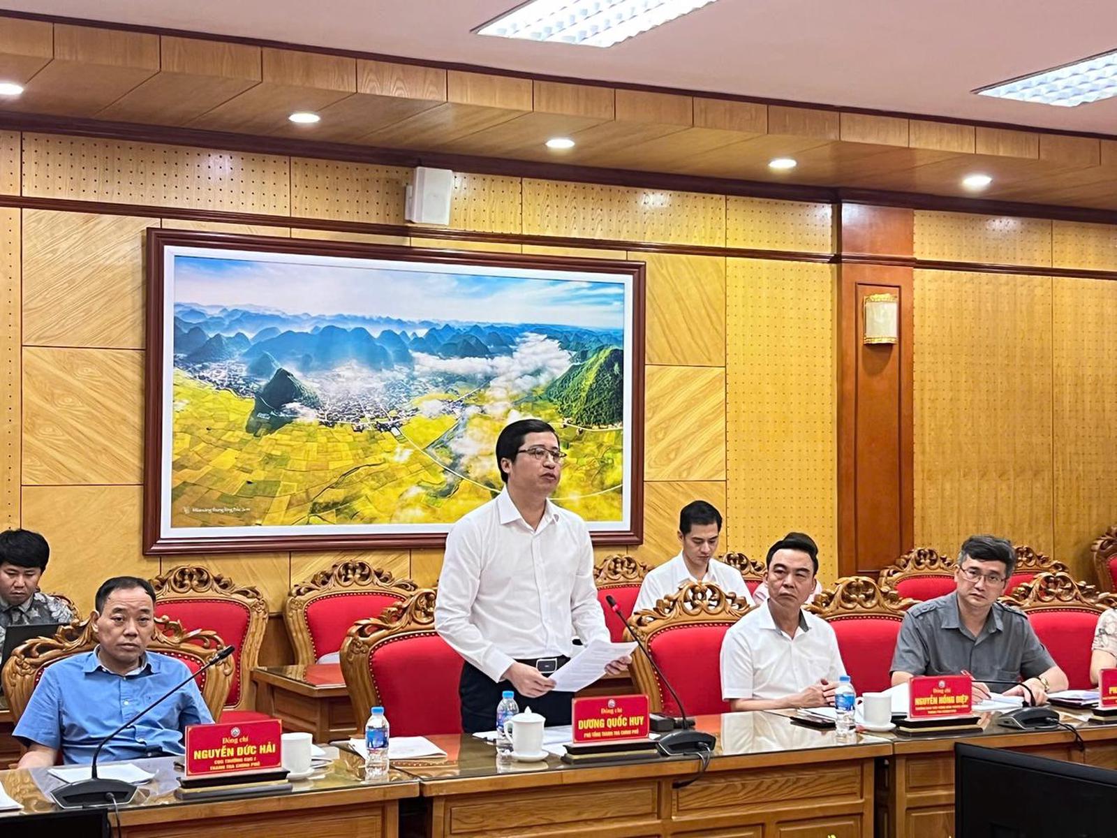 Phó Tổng Thanh tra Chính phủ Dương Quốc Huy, Tổ trưởng Tổ công tác số 1 phát biểu tại buổi làm việc với tỉnh Lạng Sơn. Ảnh: CB