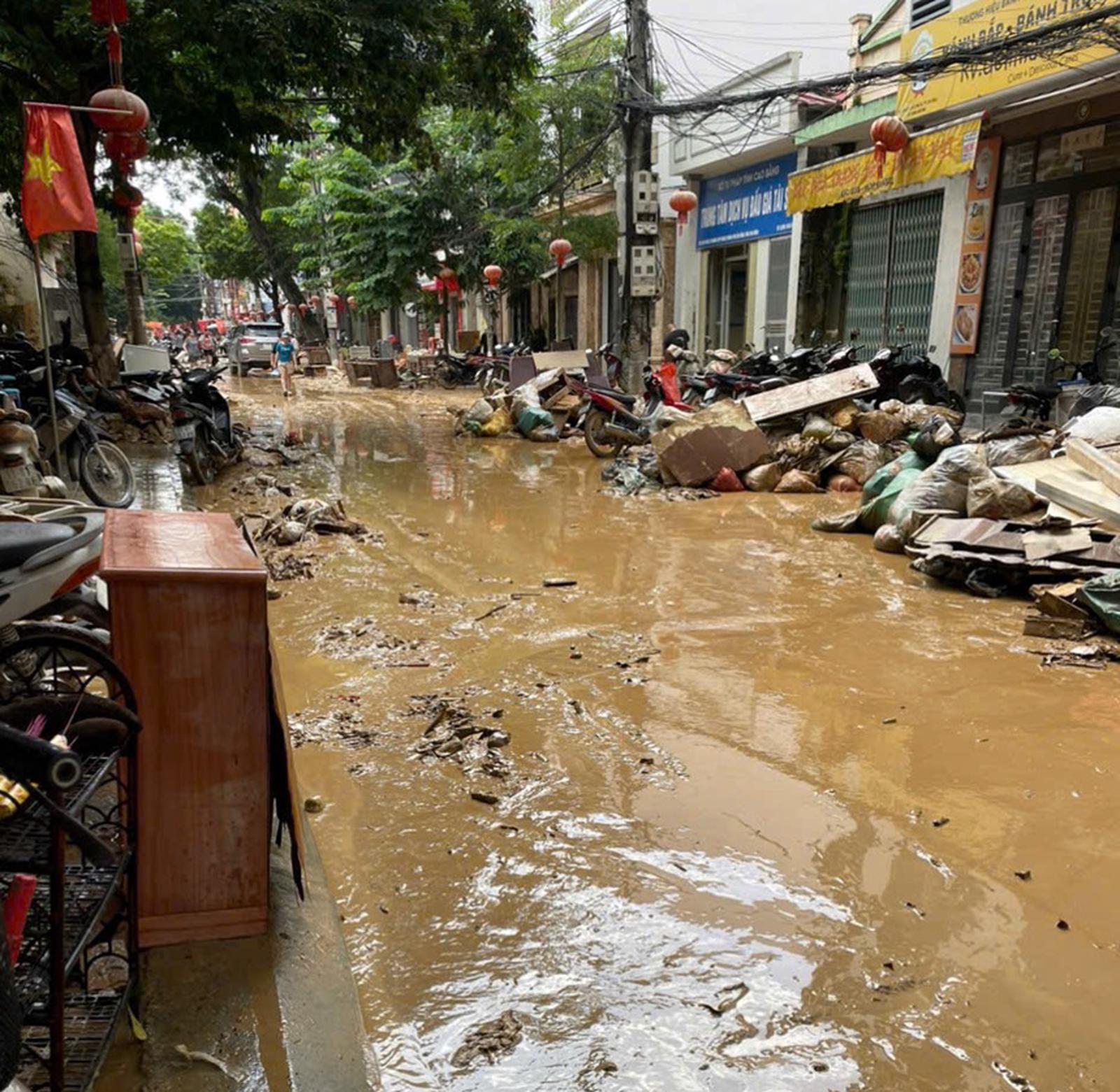 Phố phường trung tâm tràn ngập bùn đất sau khi lũ rút. Ảnh: TH