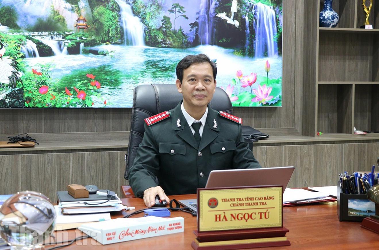 Chánh Thanh tra tỉnh Cao Bằng Hà Ngọc Tú trao đổi với phóng viên. Ảnh: Trung Hà
