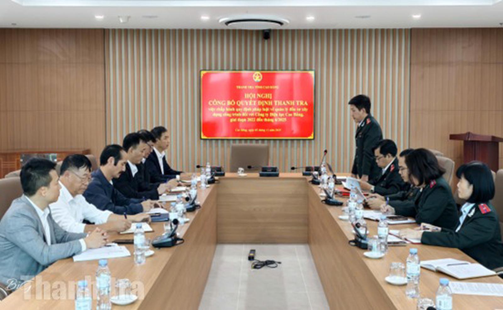 Thanh tra tỉnh Cao Bằng công bố quyết định thanh tra. Ảnh: Kim Dung