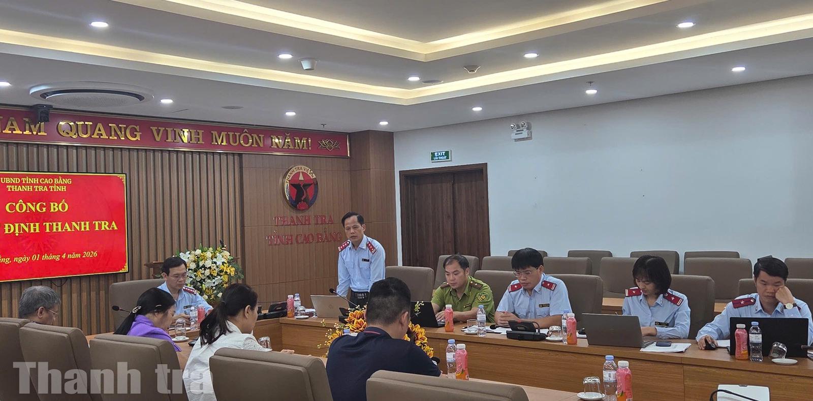 (Thanh tra) - Chiều 1/4/2026, tại trụ sở cơ quan thanh tra, Thanh tra tỉnh Cao Bằng tổ chức hội nghị công bố quyết định thanh tra việc chấp hành các quy định của pháp luật trong triển khai, thực hiện Dự án đầu tư bảo vệ và phát triển rừng thuộc Công ty TNHH Lâm nghiệp Cao Bằng.