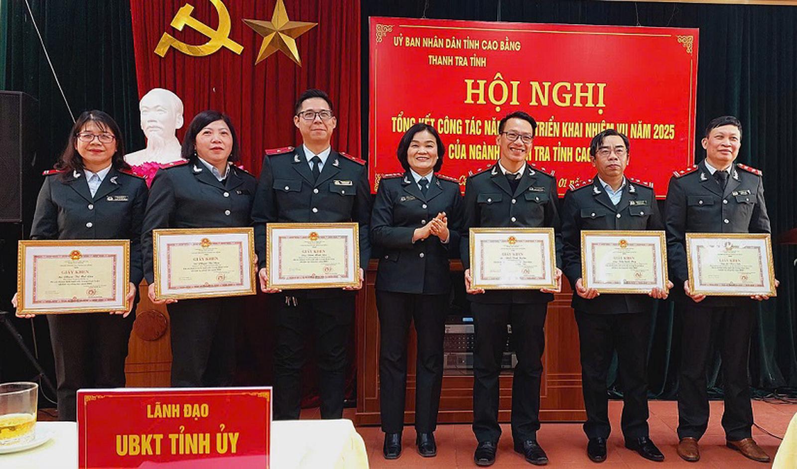 Chánh Thanh tra tỉnh Cao Bằng trao giấy khen cho các nhân có thành tích xuất sắc trong năm 2024. Ảnh: Trung Hà