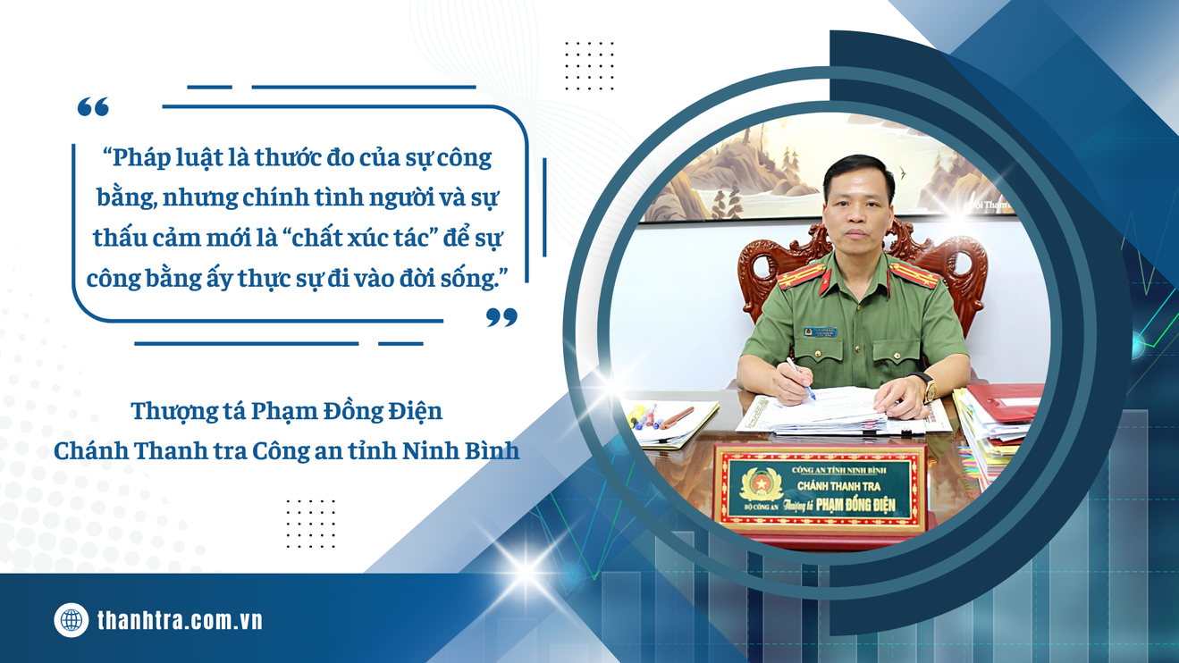 Thực tiễn sinh động từ công tác tiếp công dân, giải quyết đơn thời gian qua tại Thanh tra Công an tỉnh Ninh Bình đã khẳng định một thông điệp sâu sắc, pháp luật là thước đo của sự công bằng, nhưng chính tình người và sự thấu cảm mới là “chất xúc tác” để sự công bằng ấy thực sự đi vào đời sống.