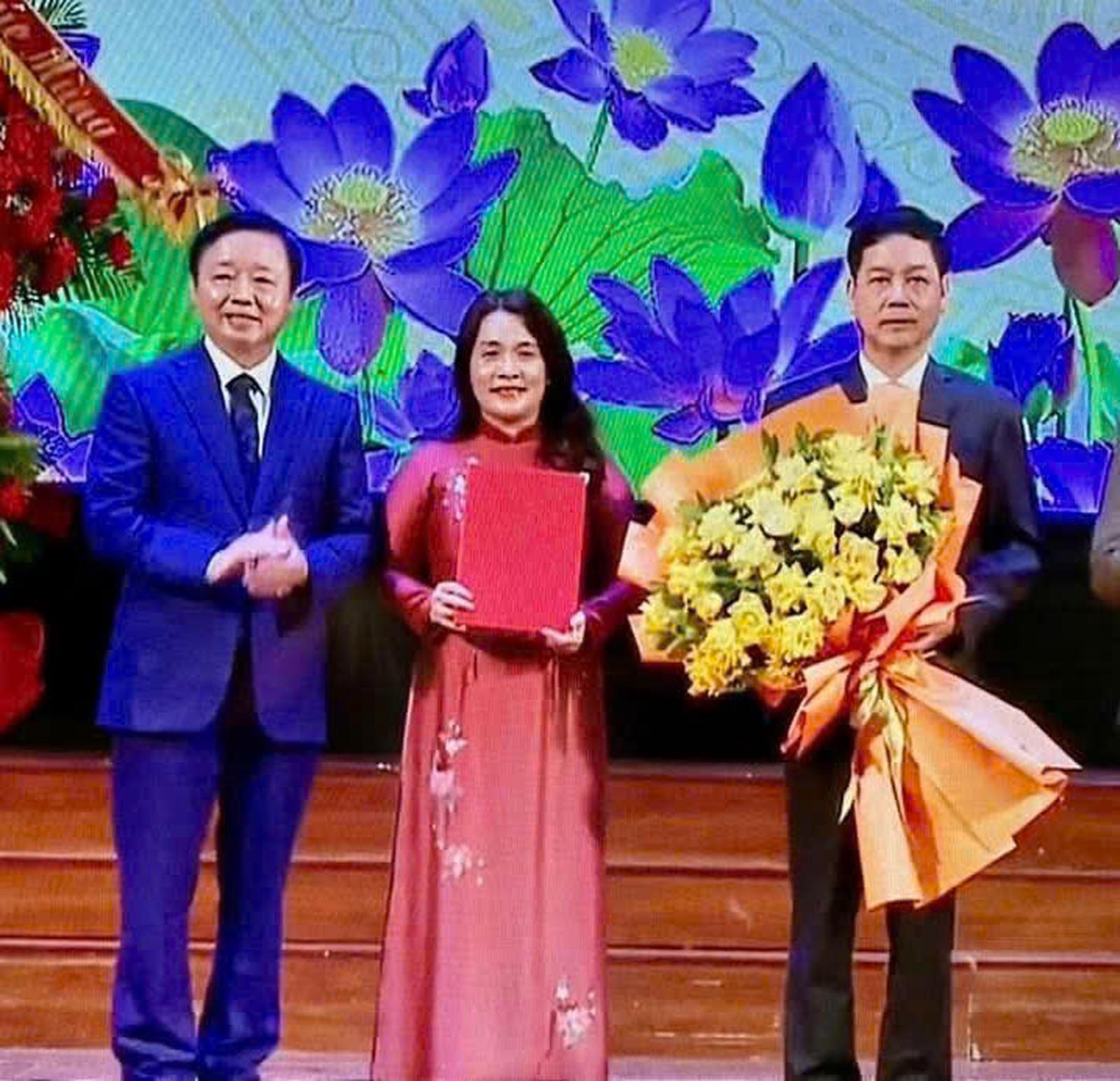 Phó Thủ tướng Trần Hồng Hà trao quyết định và tặng hoa cho Chủ nhiệm và Phó Chủ nhiệm UBKT tỉnh Quảng Trị. Ảnh: LHC
