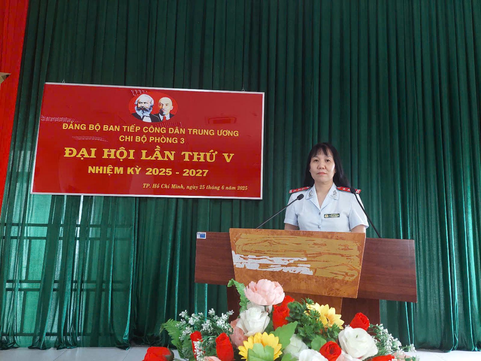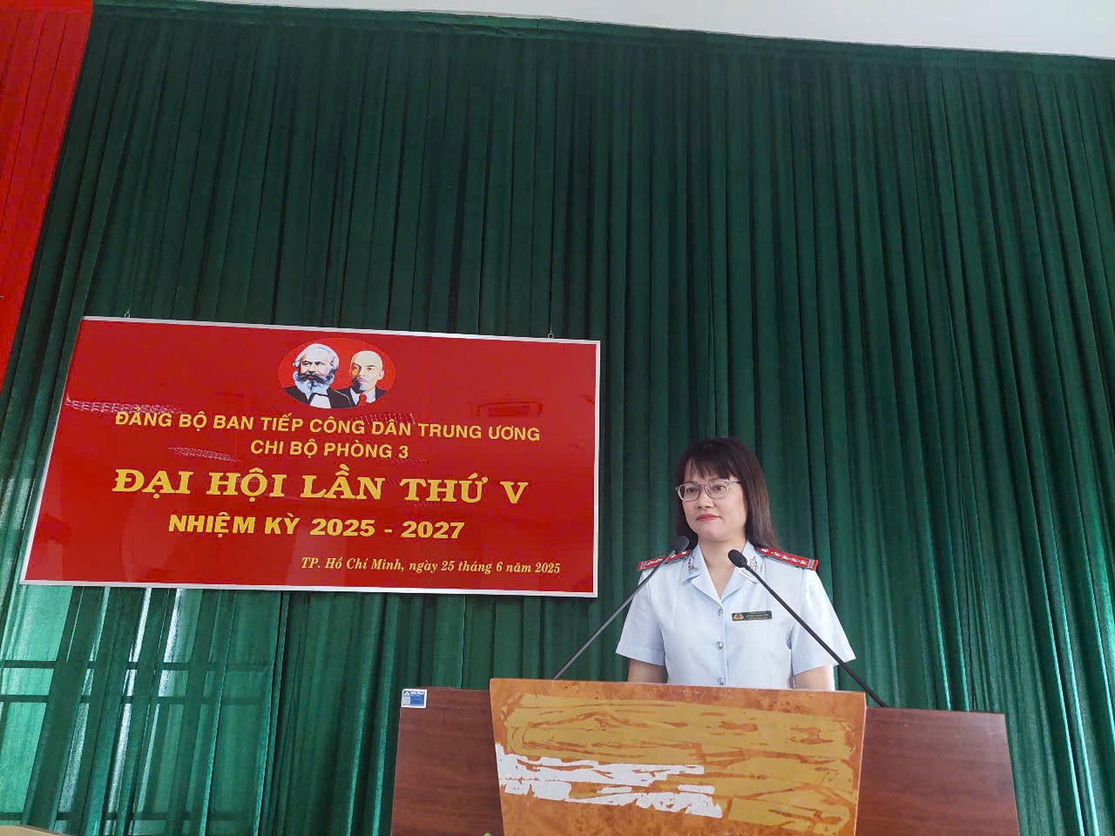 (Thanh tra) - Sáng 25/6, tại Thành phố Hồ Chí Minh, Chi bộ Phòng 3, thuộc Đảng bộ Ban Tiếp công dân Trung ương, tổ chức Đại hội Chi bộ, nhiệm kỳ 2025-2027. Với tinh thần đoàn kết, trách nhiệm và sự lãnh đạo sát sao, Chi bộ Phòng 3 nhiệm kỳ 2022 - 2025 đã đạt nhiều thành tựu nổi bật, đóng góp quan trọng vào công tác tiếp công dân và giải quyết khiếu nại, tố cáo tại trụ sở Tiếp công dân Trung ương tại Thành phố Hồ Chí Minh.
