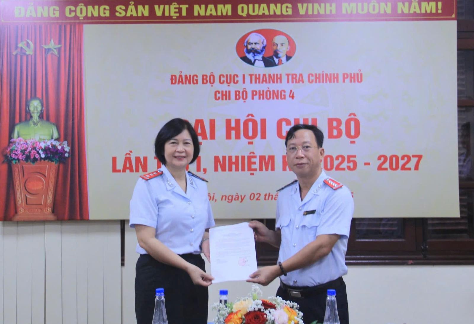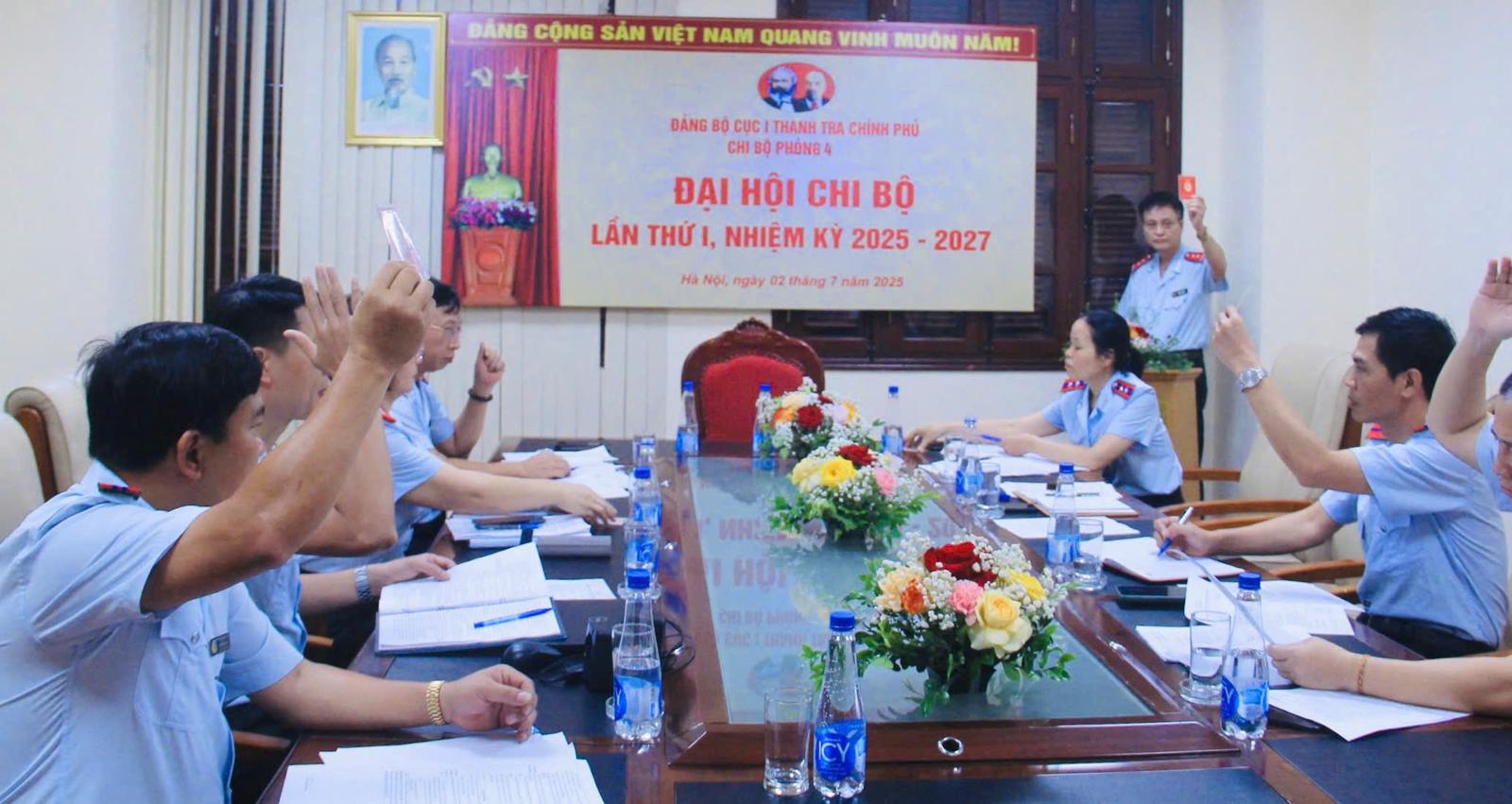 (Thanh tra) - Nhiệm kỳ 2025-2027, Chi bộ Phòng 4, Cục Thanh tra, giải quyết khiếu nại, tố cáo khu vực phía Bắc (Cục I), Thanh tra Chính phủ quyết tâm xây dựng Chi bộ trong sạch vững mạnh, đoàn kết thống nhất, thực hiện tốt công tác tự phê bình, phê bình và nguyên tắc tập trung dân chủ trong Chi bộ; nâng cao vai trò lãnh đạo của cấp uỷ Đảng; xây dựng đội ngũ cán bộ đảng viên luôn tiên phong gương mẫu; hoàn thành tốt nhiệm vụ được giao...