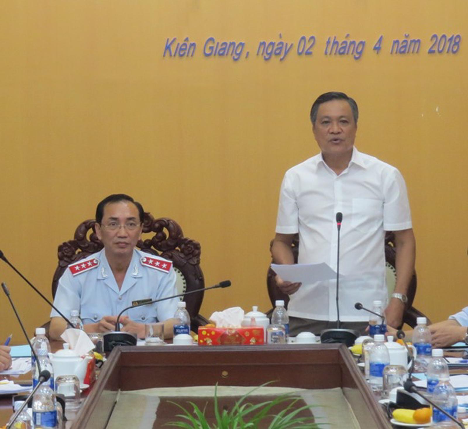 Chiều 2/4/2018, tại trụ sở UBND tỉnh Kiên Giang, Phó Tổng Thanh tra Chính phủ Đặng Công Huẩn, đã chủ trì công bố quyết định thanh tra. Ảnh: NG