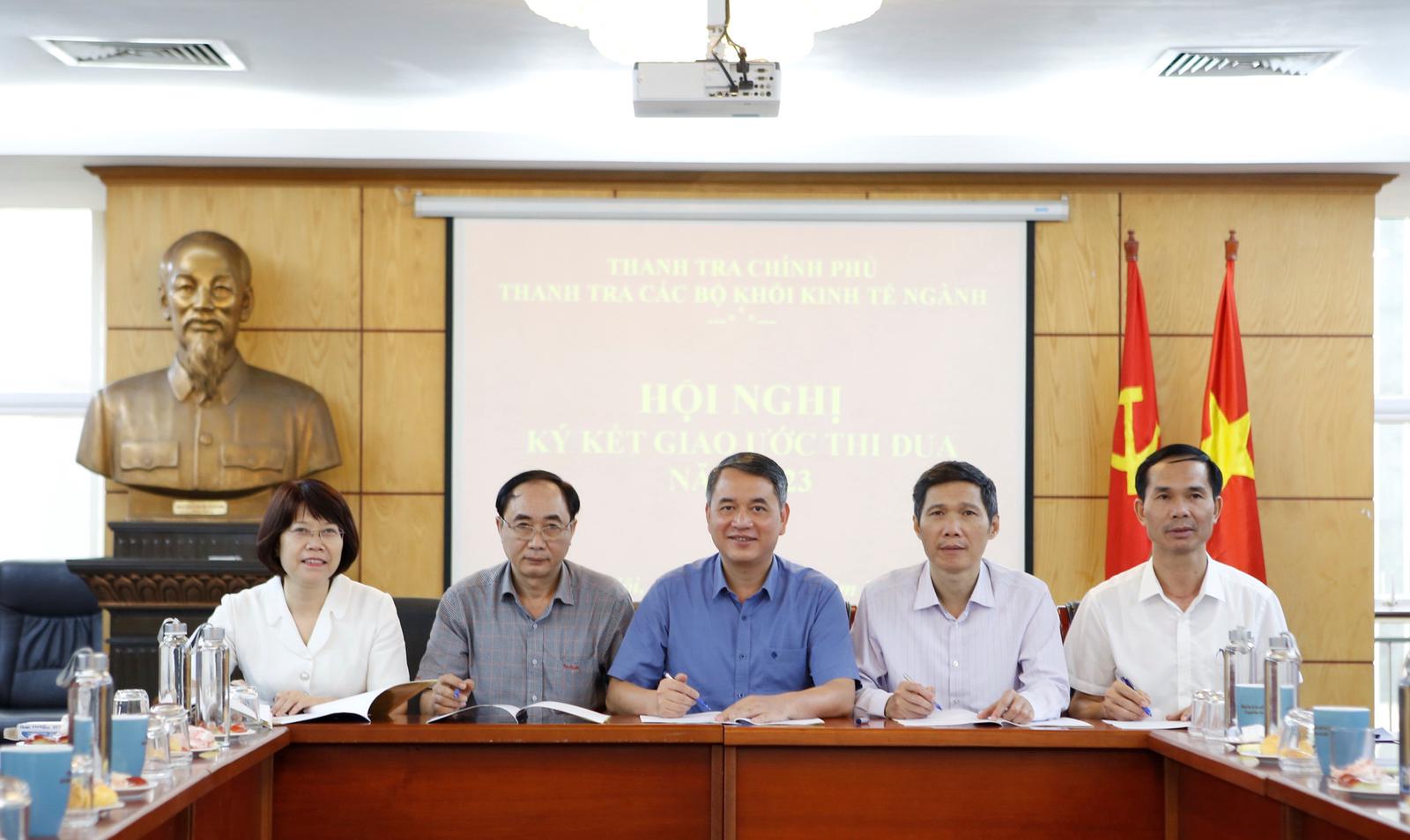 Ngay từ đầu năm 2023, thanh tra các bộ Khối Kinh tế ngành đã tổ chức ký giao ước thi đua để cùng thực hiện nhiệm vụ chuyên môn. Ảnh: TH