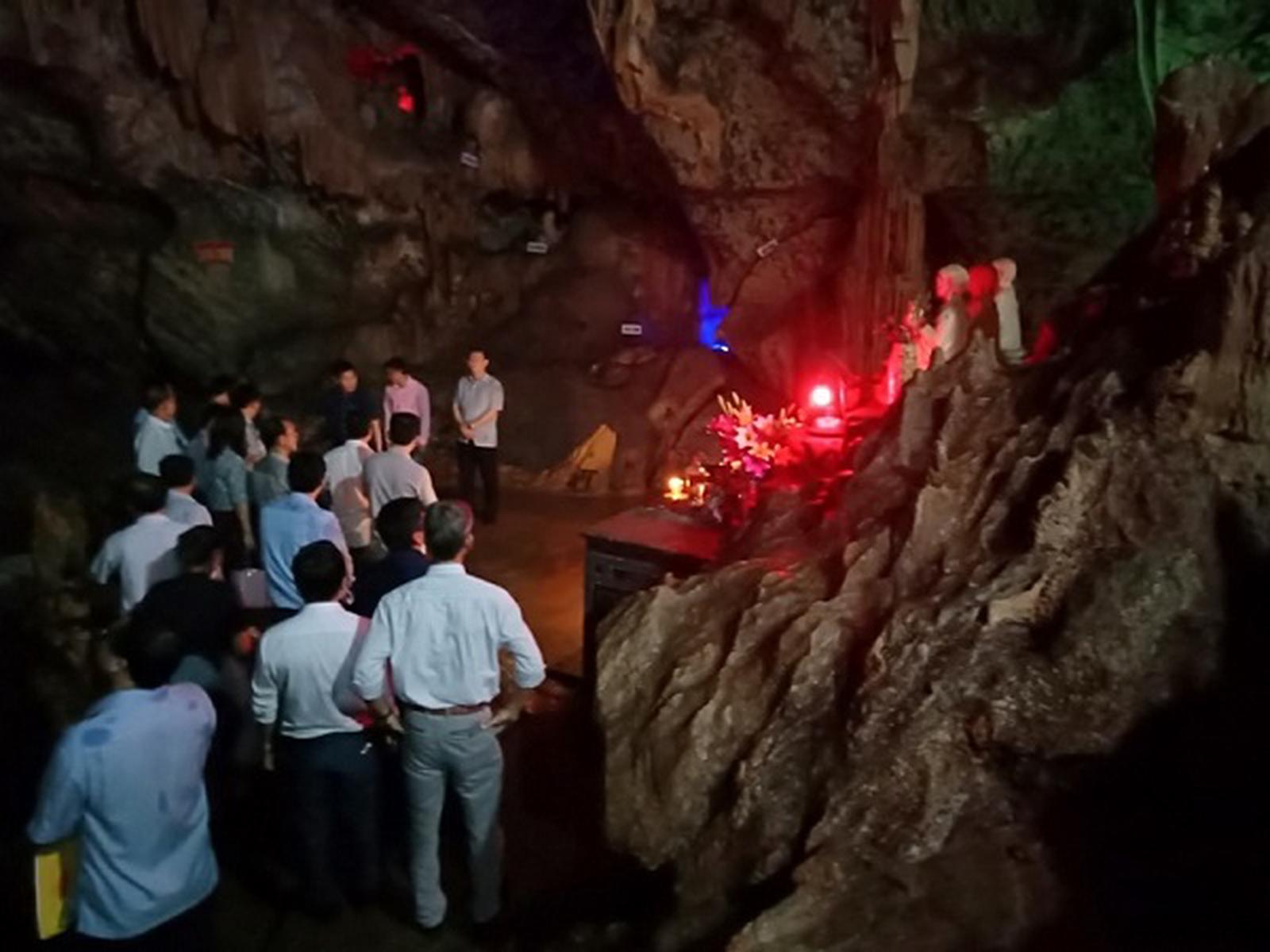 Đoàn Kiểm tra tại khu vực phía trong hang động Tiên Sơn. Ảnh: VT