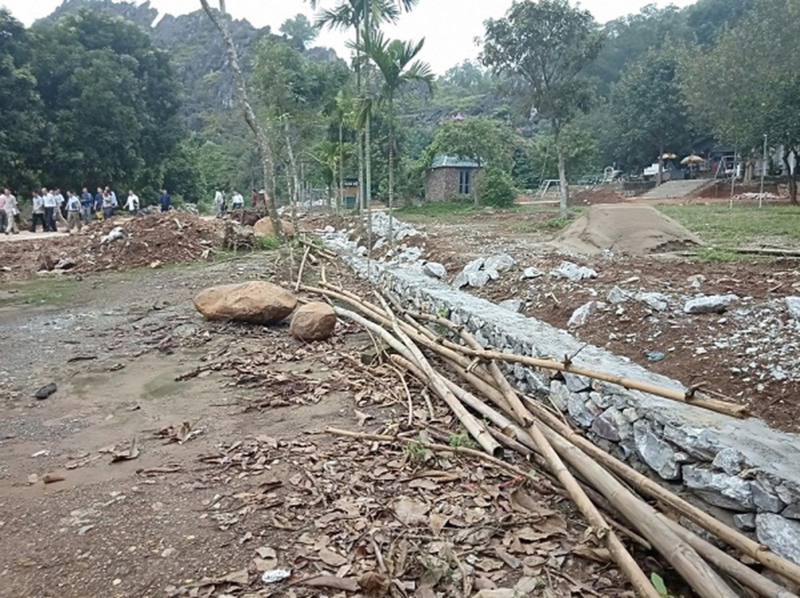 Khu vực Công ty Kim Quy tiến hành xây dựng bên ngoài khiến nhân dân làng cổ làm đơn khiếu nại. Ảnh: VT
