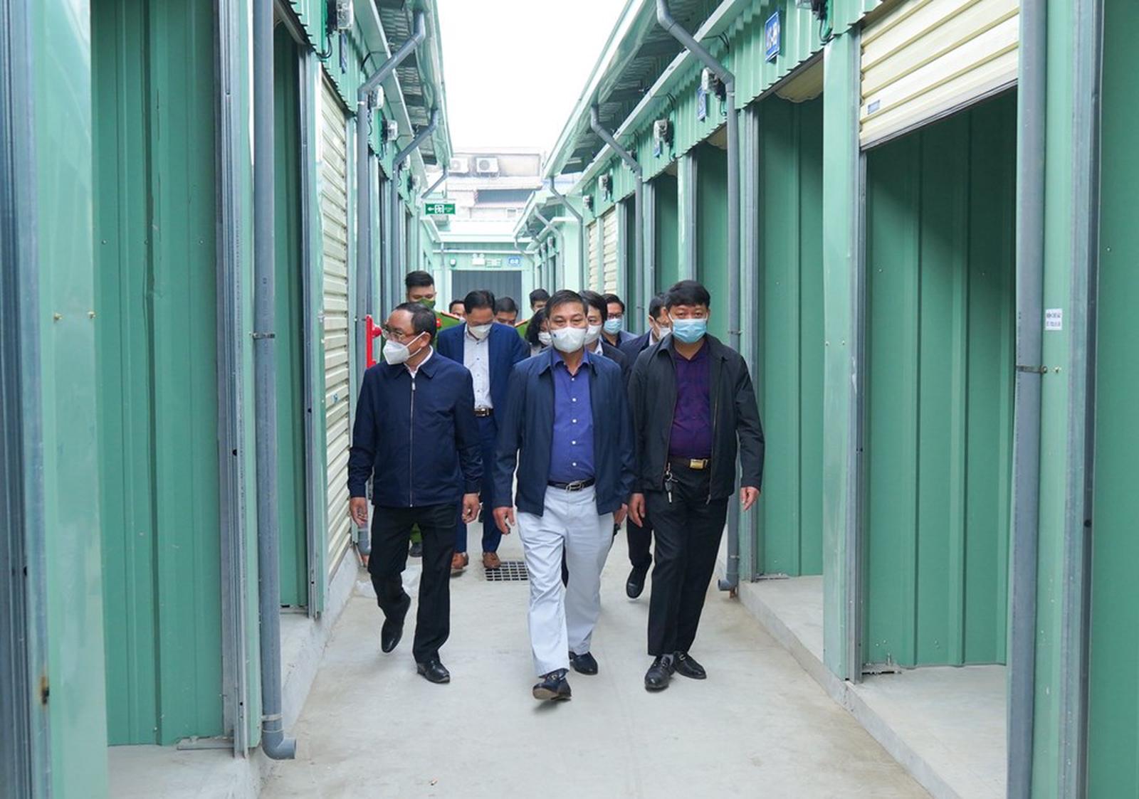 Chủ tịch UBND TP Nguyễn Văn Tùng (đi giữa) kiểm tra việc xây dựng tại khu chợ tạm. Ảnh: DT