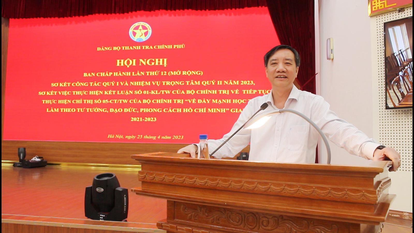 Tại hội nghị, Phó Bí thư Đảng ủy TTCP, Cục trưởng Cục Phòng, chống tham nhũng Hoàng Thái Dương trình bày dự thảo báo cáo sơ kết việc thực hiện Kết luận số 01-KL/TW của Bộ Chính trị về tiếp tục thực hiện Chỉ thị số 05-CT/TW của Bộ Chính trị khóa XII “về đẩy mạnh học tập và làm theo tư tưởng, đạo đức, phong cách Hồ Chí Minh” giai đoạn 2021 - 2023.