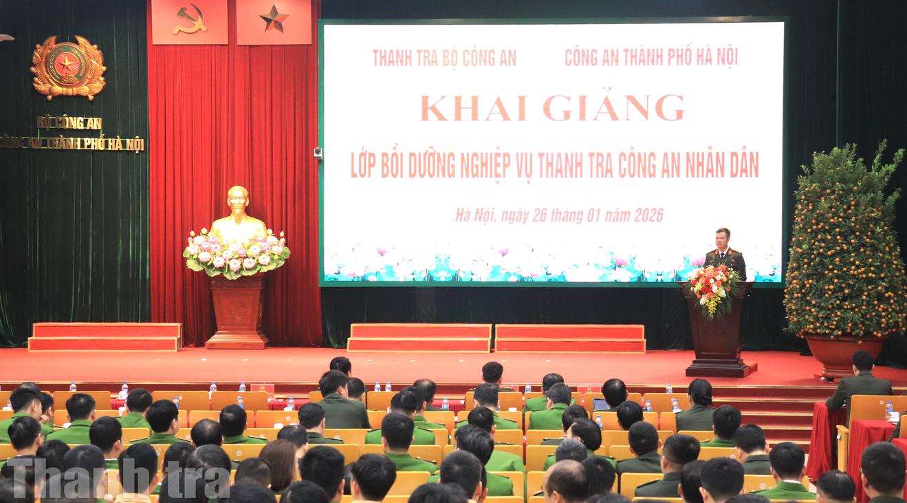 Thanh tra Bộ Công an phối hợp với Công an thành phố Hà Nội tổ chức khai giảng Lớp bồi dưỡng nghiệp vụ thanh tra CAND năm 2026. Ảnh: Trọng Tài