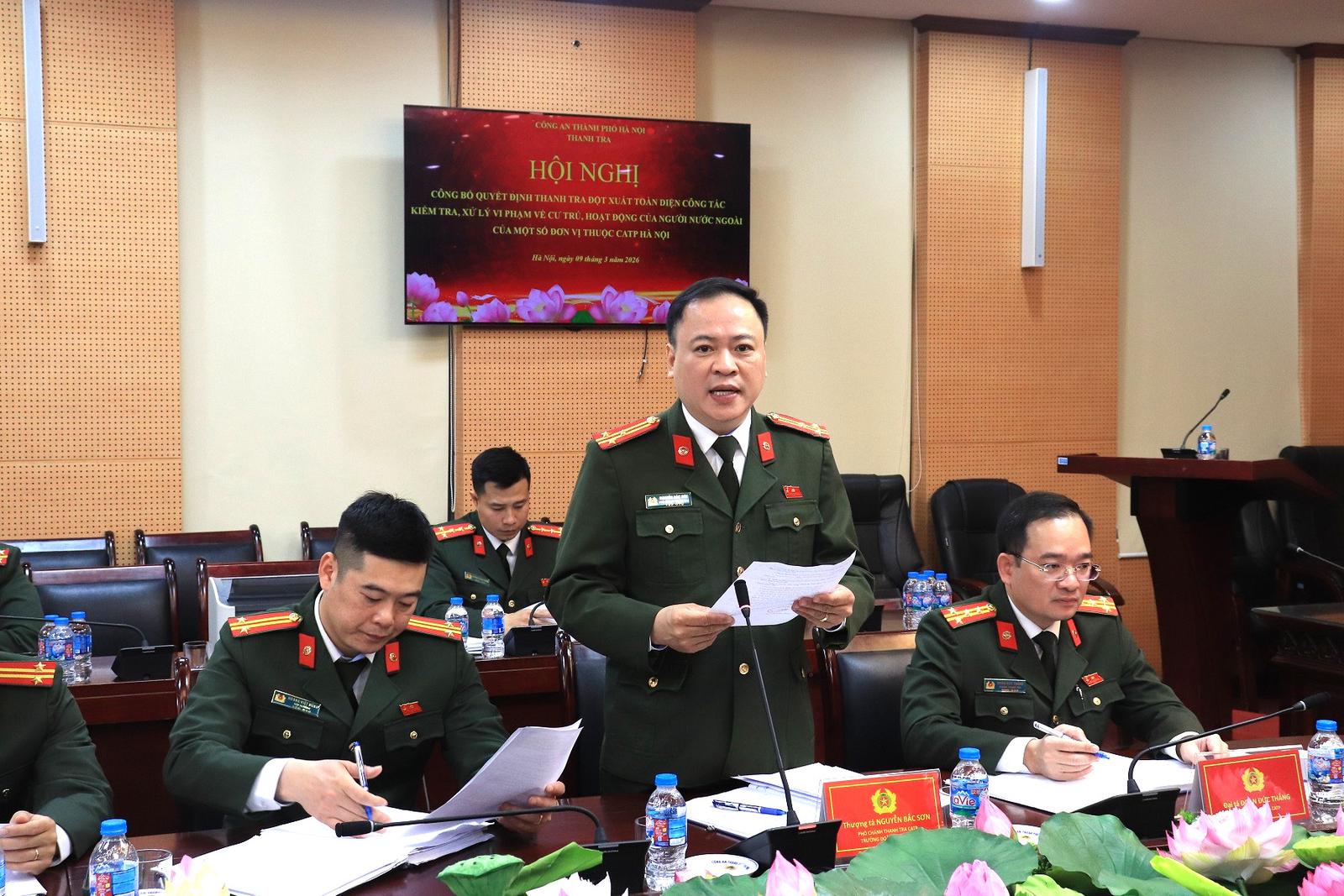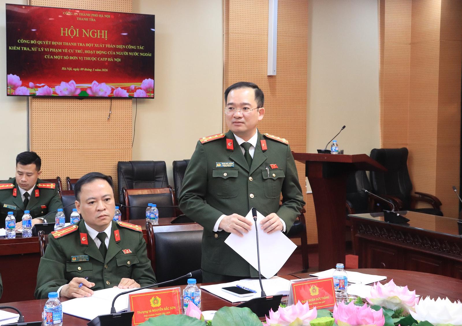 Tại hội nghị, Thượng tá Nguyễn Bắc Sơn, Phó Chánh Thanh tra Công an TP Hà Nội, Trưởng đoàn thanh tra đã công bố quyết định và thông báo lịch trình thực hiện của đợt thanh tra.