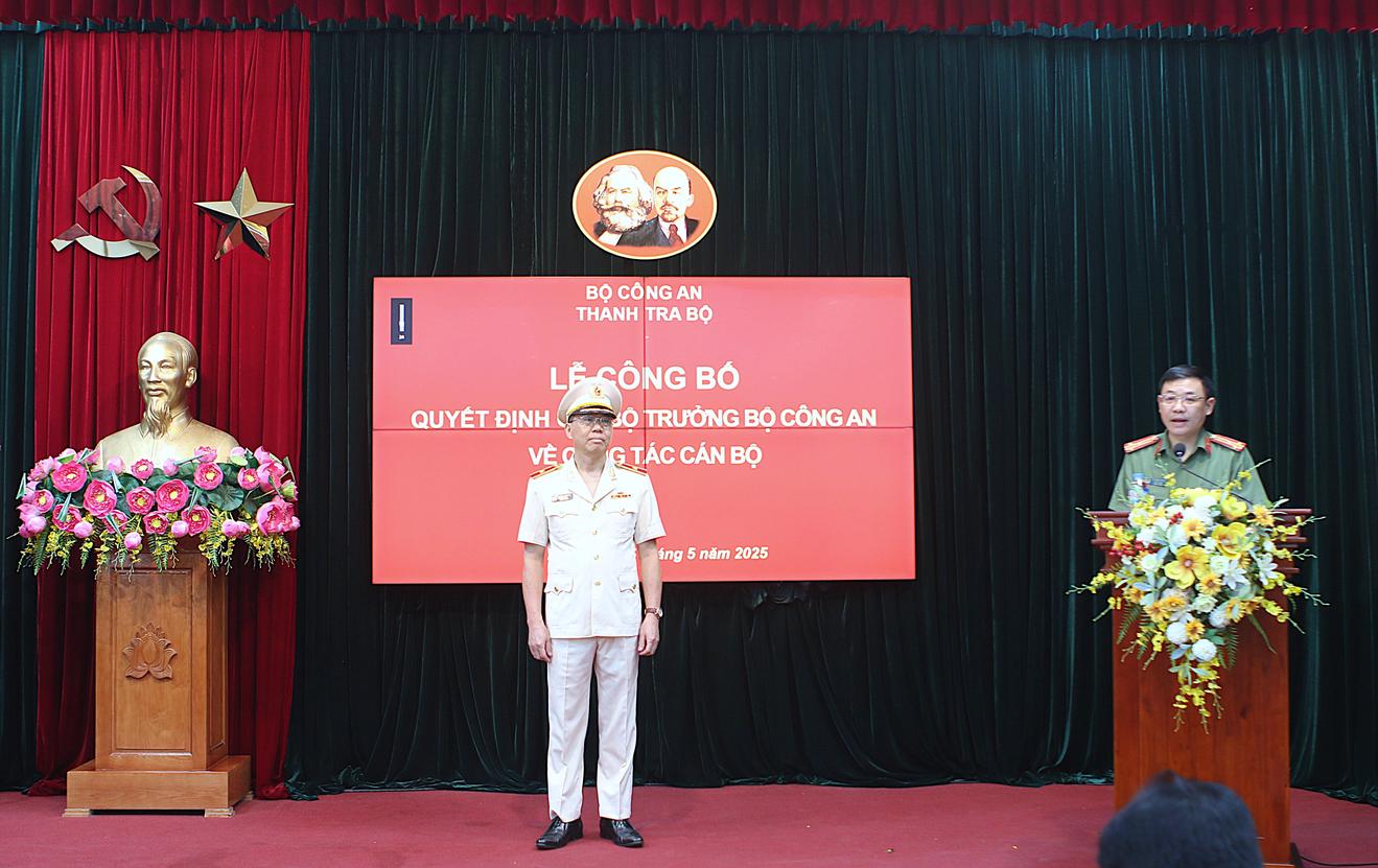 (Thanh tra) - Ngày 5/5/2025, tại Hà Nội, Thanh tra Bộ Công an tổ chức Lễ công bố Quyết định số 2836/QĐ-BCA của Bộ trưởng Bộ Công an về công tác cán bộ đối với lãnh đạo Thanh tra Bộ Công an.