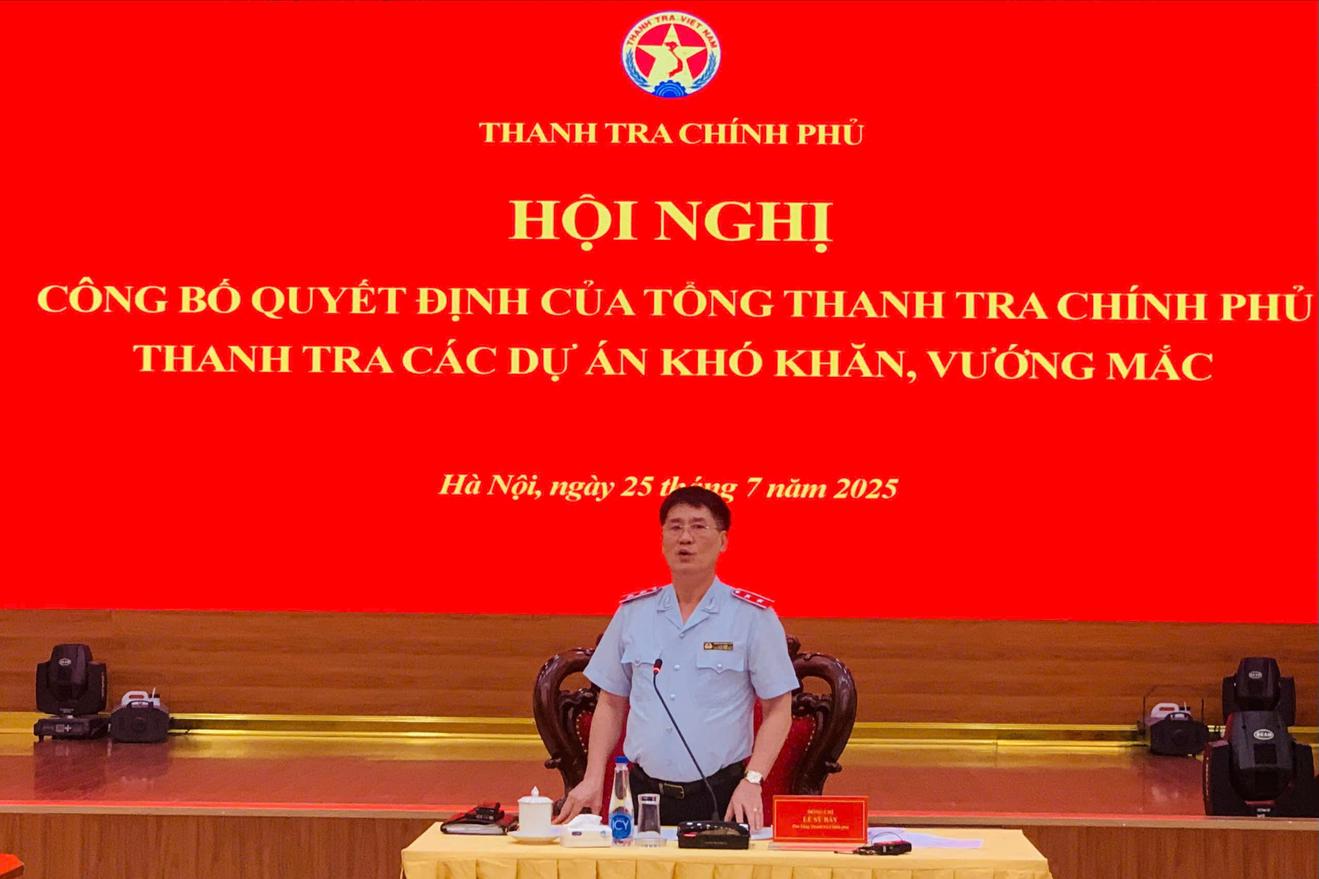 Phát biểu tại buổi công bố quyết định thanh tra, Phó Tổng Thanh tra Lê Sỹ Bảy cho biết, thực hiện kết luận của Thủ tướng Chính phủ tại hội nghị ngày 17/7/2025, ngày 23/7/2025, Tổng Thanh tra Chính phủ đã ban hành Quyết định số 674/QĐ-TTCP về thanh tra một số dự án đang gặp khó khăn, vướng mắc, chậm tiến độ, tồn đọng kéo dài, hiệu quả thấp và có nguy cơ gây thất thoát, lãng phí nguồn lực, trong đó có một số dự án tại Bộ Xây dựng. Qua đó phát hiện những hạn chế, bất cập trong chính sách và pháp luật, xác định rõ trách nhiệm và đề xuất biện pháp xử lý các vi phạm (nếu có).
