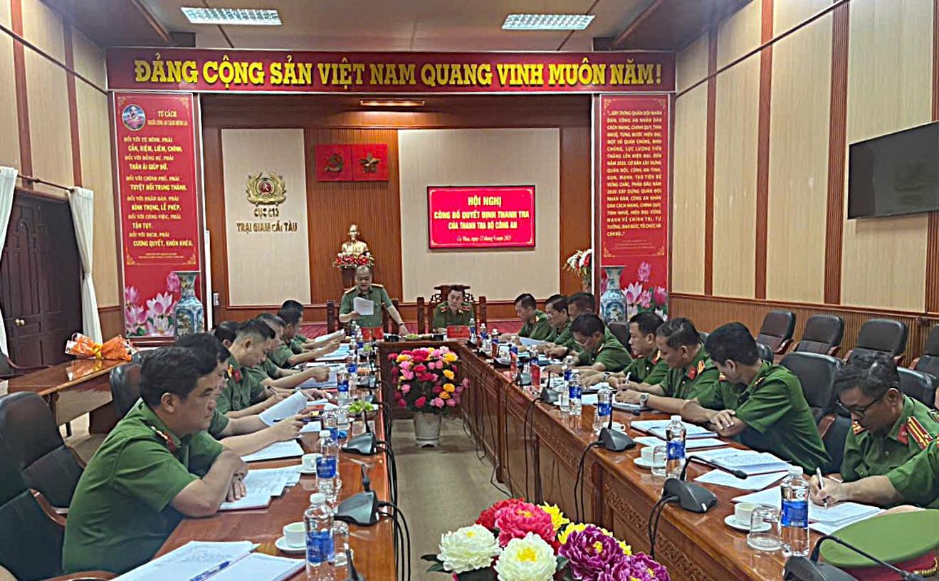 Tại Hội nghị, Đại tá Trần Văn Thư, Phó Chánh Thanh tra Bộ Công an, Trưởng đoàn thanh tra đã công bố toàn văn Quyết định của Chánh Thanh tra Bộ Công an về thanh tra một số mặt công tác của Trại giam Cái Tàu; phổ biến nhiệm vụ, quyền hạn của Trưởng đoàn thanh tra, thành viên Đoàn thanh tra và quyền và nghĩa vụ của đối tượng thanh tra theo quy định của pháp luật; tóm tắt nội dung Kế hoạch tiến hành thanh tra đã được Chánh Thanh tra Bộ Công an phê duyệt, phương pháp làm việc của Đoàn thanh tra tại Trại giam Cái Tàu.