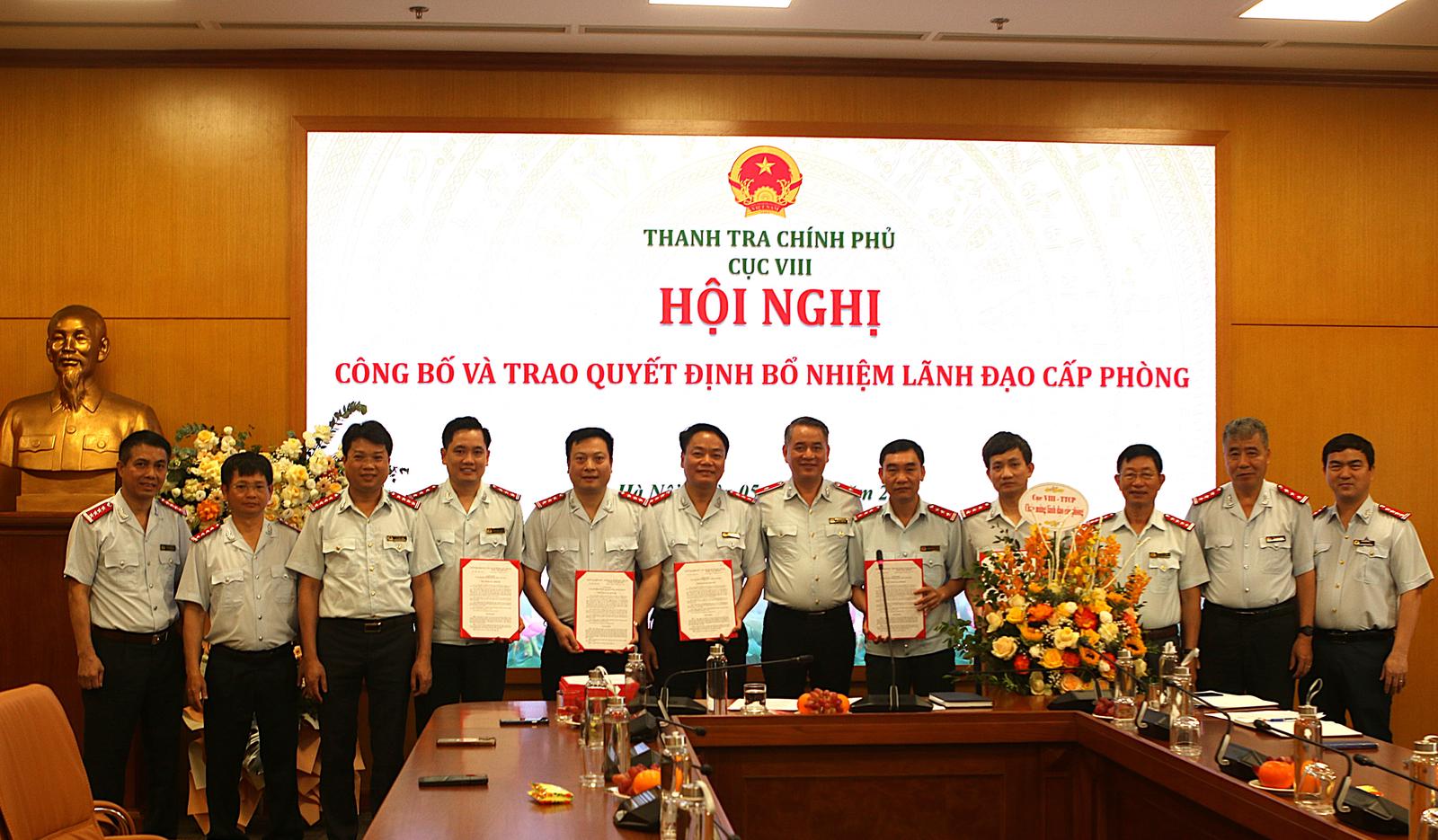 Tại buổi trao quyết định tiếp nhận, bổ nhiệm lãnh đạo cấp phòng, ông Lê Vũ Tuấn Anh, Cục trưởng Cục VIII đã trao quyết định của Tổng Thanh tra Chính phủ cho các Trưởng phòng và cấp phó của các phòng Tổng hợp; Thanh tra lĩnh vực nông, lâm nghiệp và phát triển nông thôn; Thanh tra lĩnh vực thuỷ sản và diêm nghiệp; Thanh tra lĩnh vực thuỷ lợi và phòng chống thiên tai; Thanh tra lĩnh vực quản lý đất đai, đo đạc, bản đồ; Thanh tra lĩnh vực quản lý tài nguyên nước, biển, hải đảo; Thanh tra lĩnh vực môi trường, khí hậu, thuỷ văn; Thanh tra lĩnh vực địa chất, khoáng sản.