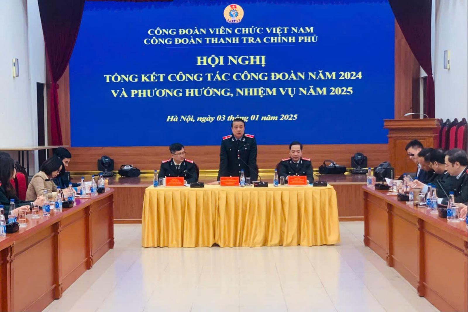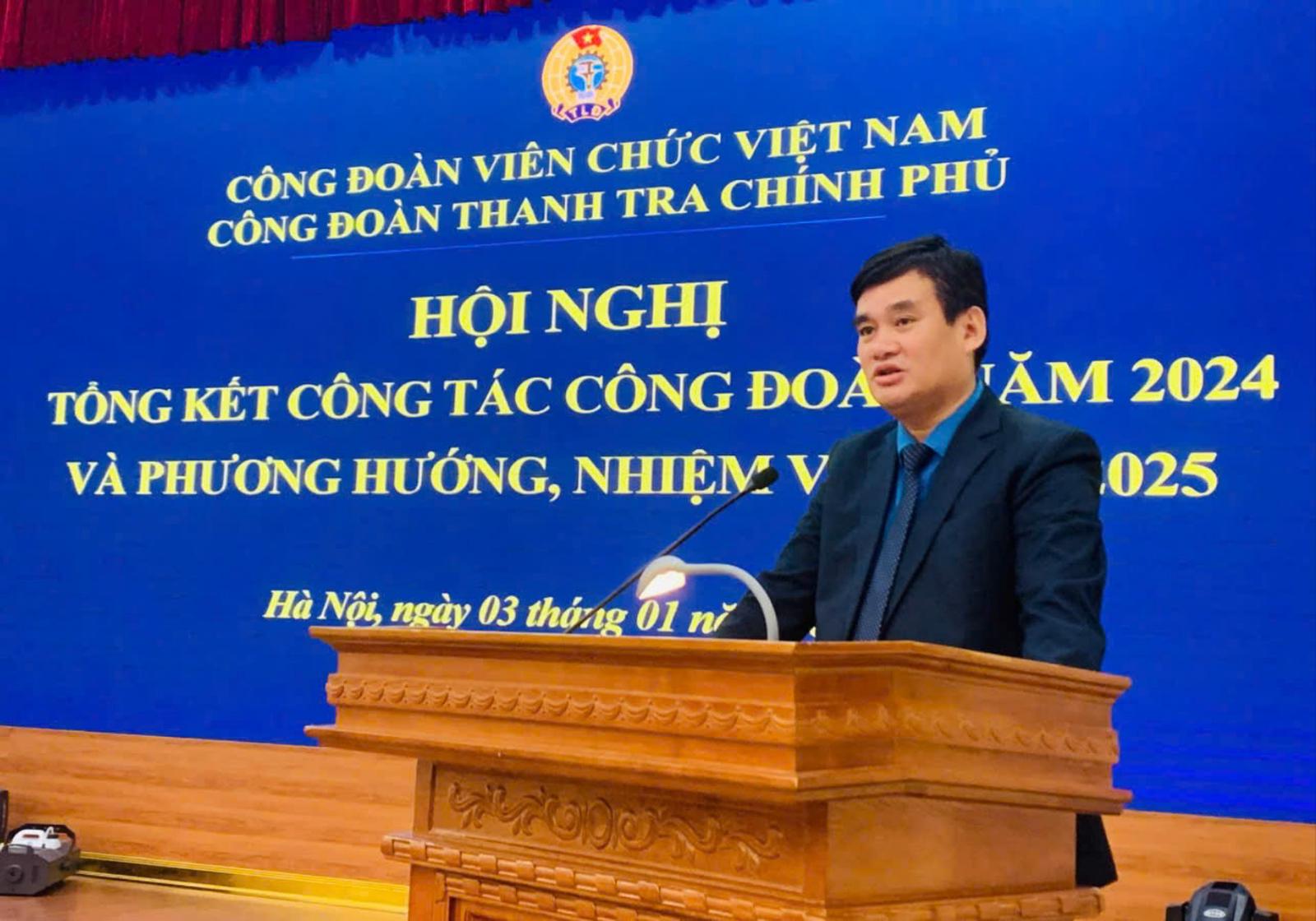 Phát biểu tại hội nghị, ông Thái Hoài Nam, Phó Chủ tịch Công đoàn Viên chức Việt Nam đánh giá cao những kết quả mà Công đoàn TTCP đạt được trong năm 2024. Đối với công tác năm 2025, Phó Chủ tịch Công đoàn viên chức Việt Nam đề nghị Công đoàn TTCP khắc phục những tồn tại đã được chỉ ra trong báo cáo. Tiếp tục thực hiện tốt vai trò công đoàn trong mọi hoạt động, tổ chức thực hiện thắng lợi kế hoạch đã đề ra, trong đó thực hiện hiệu quả Nghị quyết số 18-NQ/TW theo yêu cầu của Ban Chỉ đạo Trung ương, Ban Chỉ đạo của Chính phủ.