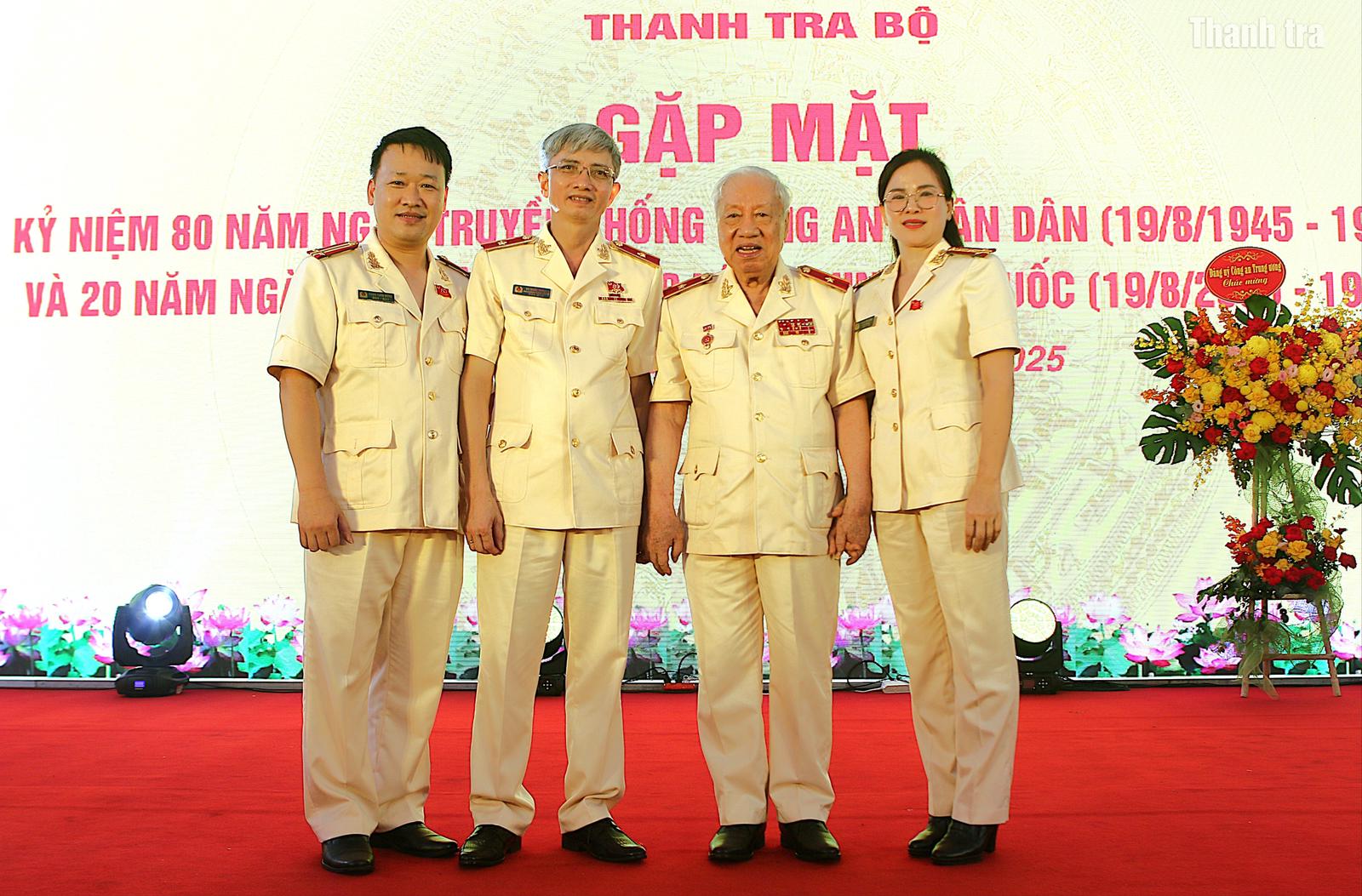 Thiếu tướng, Anh hùng lực lượng vũ trang Nhân dân Phan Văn Lai, Chánh Thanh tra đầu tiên của Thanh tra Bộ Công an, chụp ảnh lưu niệm tại buổi gặp mặt 80 năm ngày truyền thống CAND. Ảnh: Hoàng Nam
