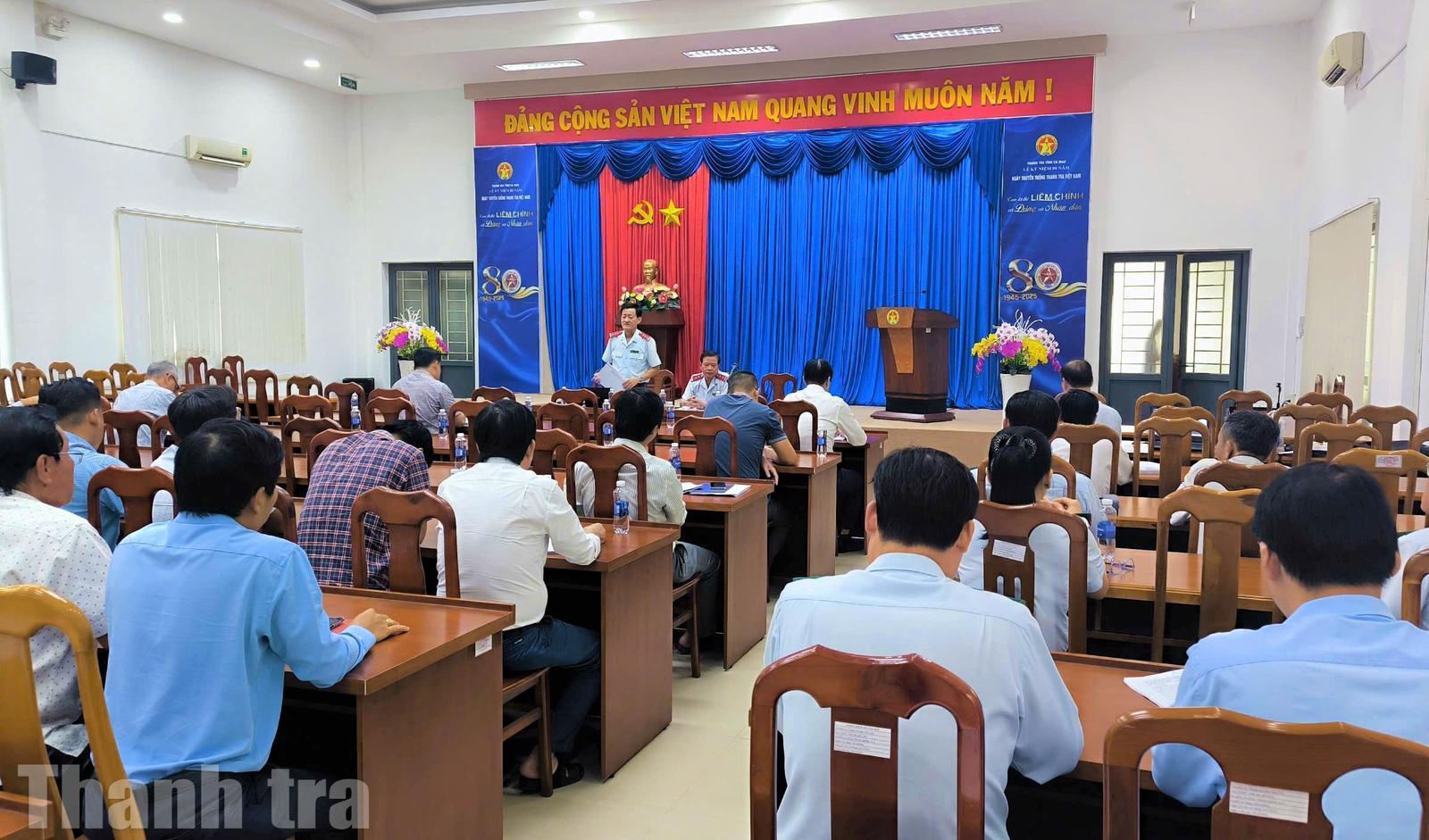 Thanh tra tỉnh Cà Mau công bố Kết luận thanh tra số 019/KL-TT về thanh tra chuyên đề các công trình, dự án có khó khăn, vướng mắc, chậm tiến độ, tồn đọng kéo dài, hiệu quả thấp, nguy cơ gây thất thoát, lãng phí trên địa bàn tỉnh. Ảnh: M.Tuấn
