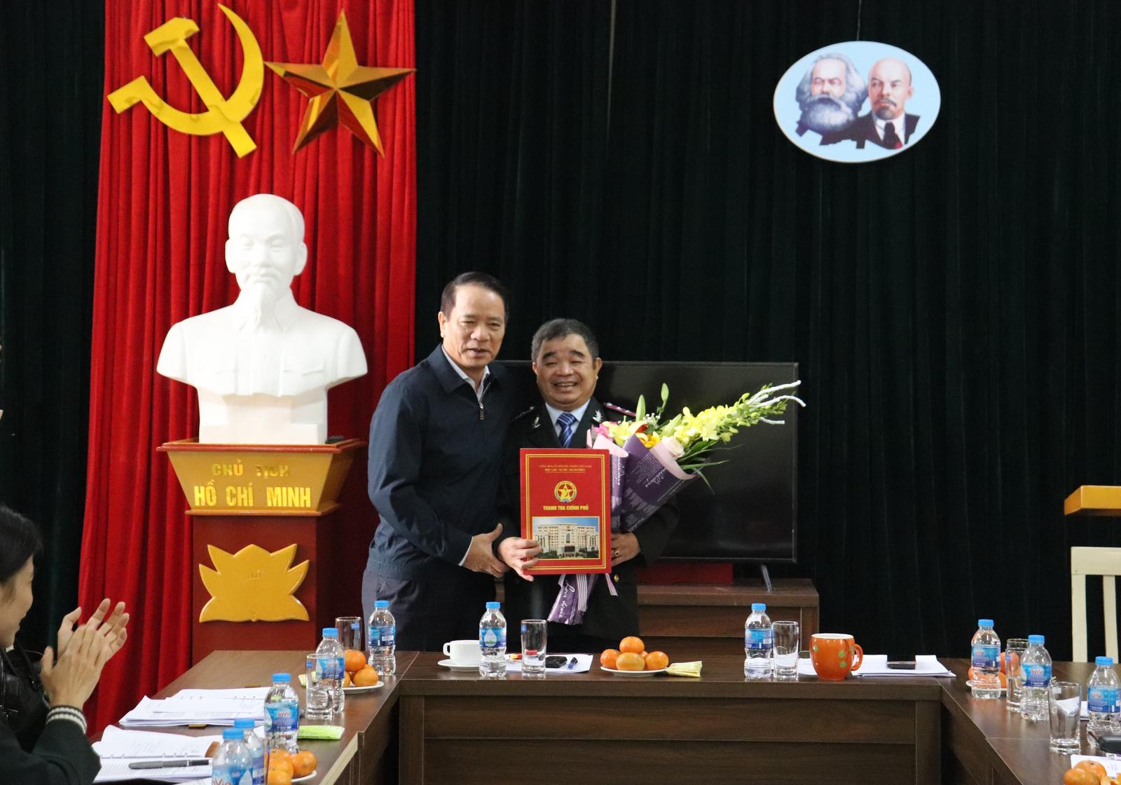 Phó Tổng Thanh tra Nguyễn Văn Thanh trao quyết định nghỉ hưu cho ông Lê Hải Ninh -quyền Trưởng phòng Tiếp công dân 2, Ban TCDTW. Ảnh: TH