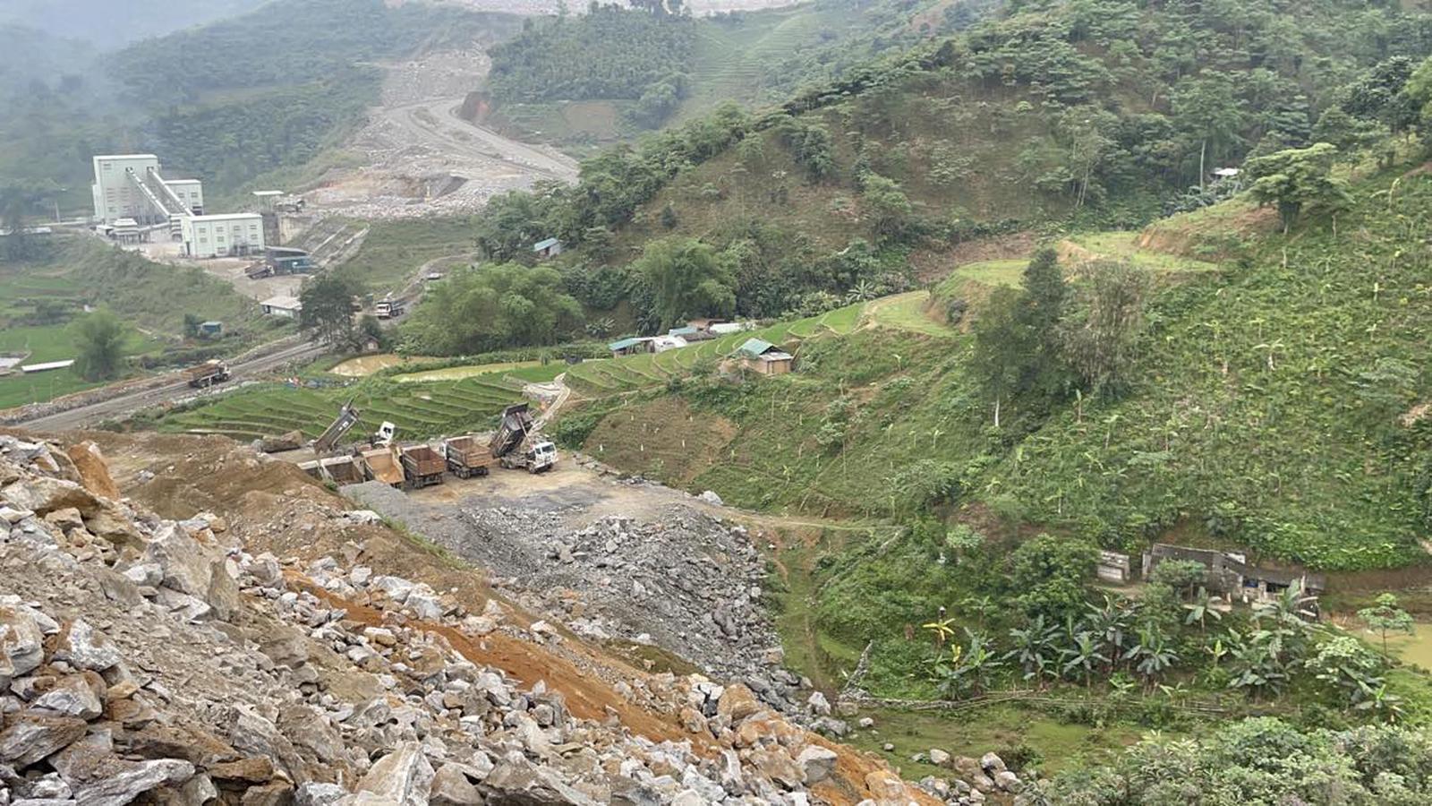 Giữa bãi thải và khai trường khai thác của Công ty Cổ phần Đồng Tả Phời - Vinacomin vẫn còn nhiều hộ dân sinh sống. Ảnh: ND