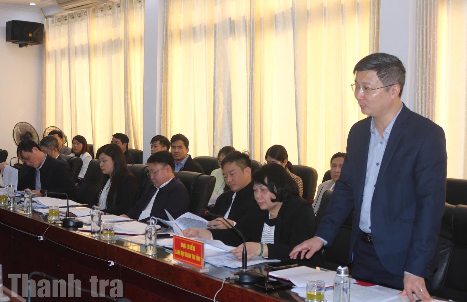 Chánh Thanh tra tỉnh Ninh Bình Lê Văn Cường trao đổi tại buổi làm việc. Ảnh: Trung Hà
