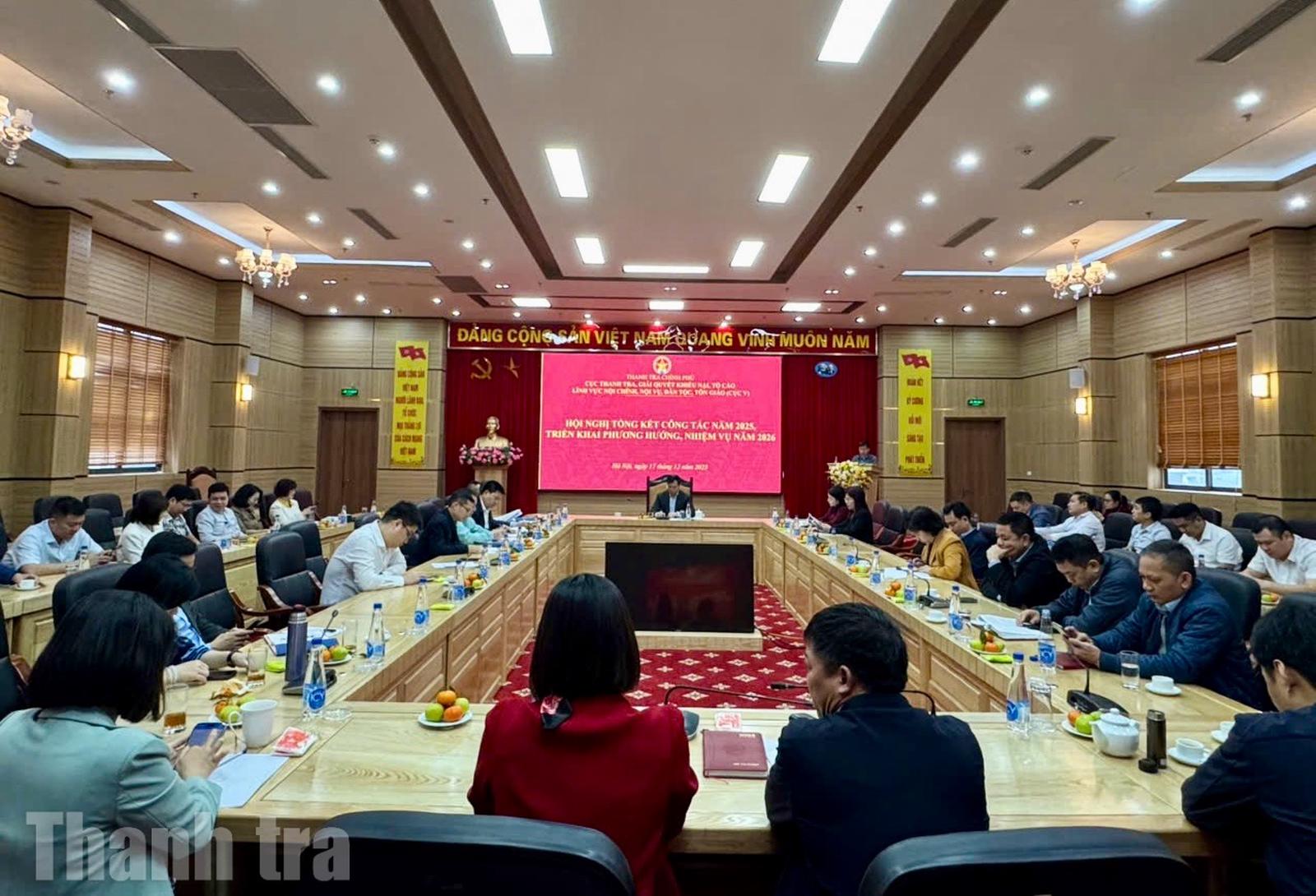 (Thanh tra) - Ngày 17/12, Cục Thanh tra, giải quyết khiếu nại, tố cáo lĩnh vực nội chính, nội vụ, dân tộc, tôn giáo (Cục V), Thanh tra Chính phủ tổ chức hội nghị tổng kết công tác năm 2025 và triển khai phương hướng, nhiệm vụ năm 2025.