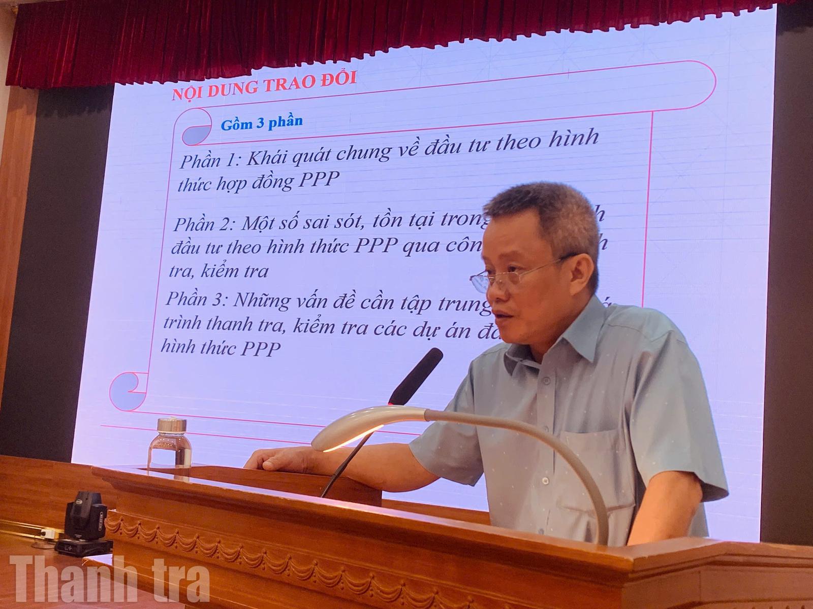 Ông Lê Quốc Đạt, Phó Cục trưởng Cục VI trình bày Chuyên đề 2: Một số nội dung khi thanh tra, kiểm tra các dự án PPP và các dự án đầu tư ngoài ngân sách.